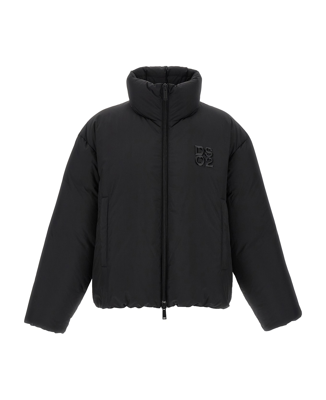 'Ball Nylon Puffer' nylon down jacket with goose feather padding, tone-on-tone 3D silicone logo and front zip closure, high neck, pockets, long sleeves with elastic cuffs, elastic with drawstring on the hem.