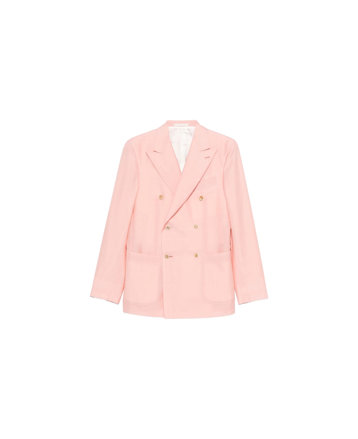 salmon double-breasted front pockets buttoned peak lapels long sleeves