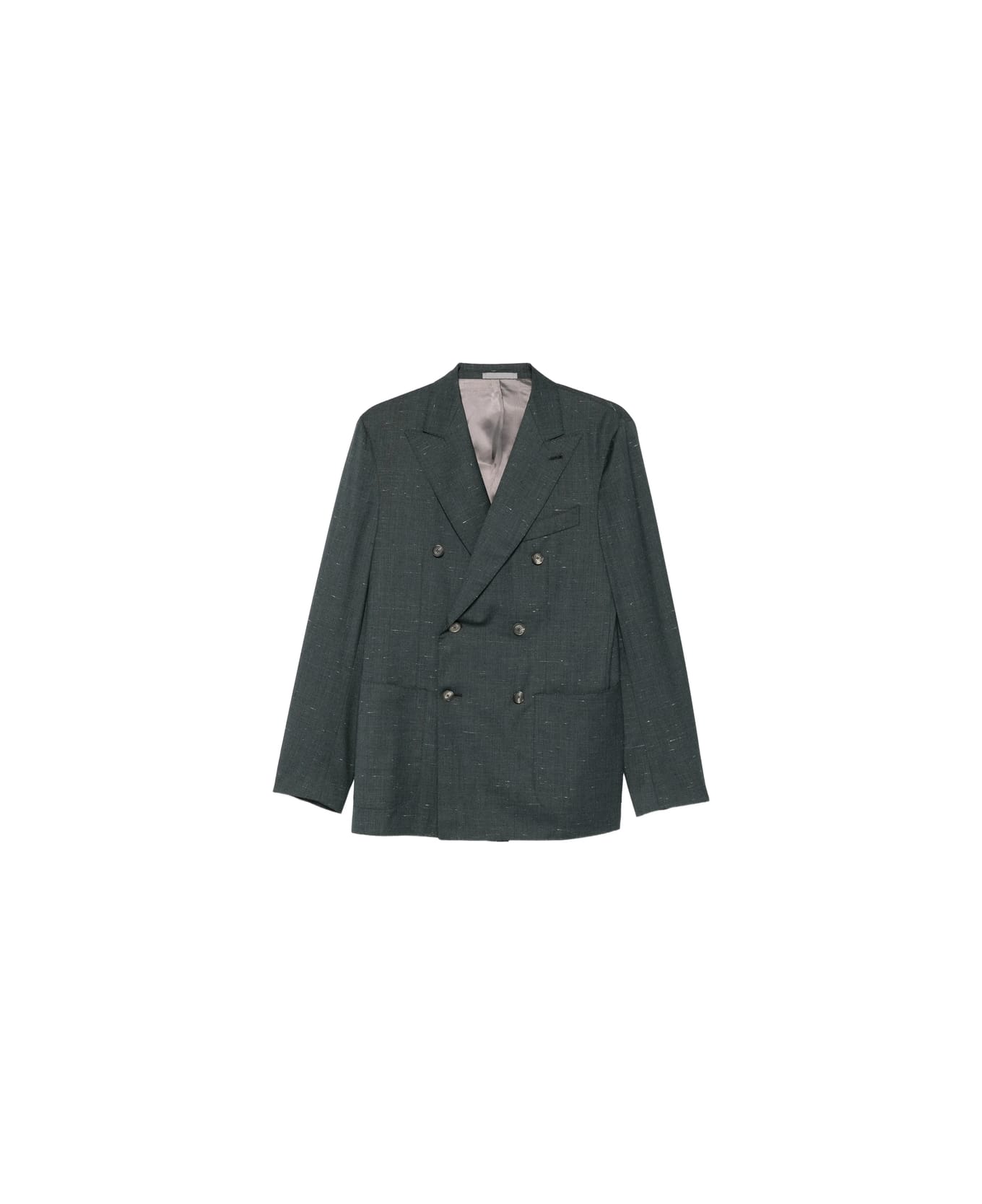 dark green double-breasted button fastening front pockets peak lapels long sleeves