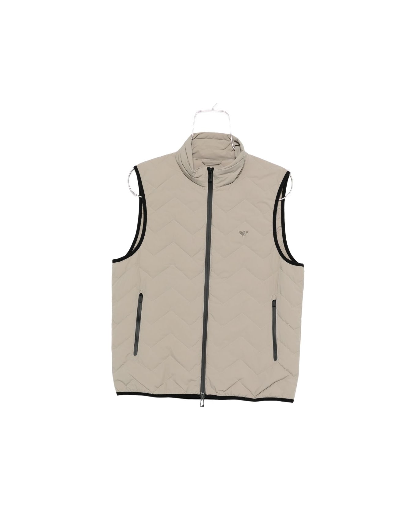 Dove grey nylon gilet with zip and high neck pockets. Composition: 85% Polyamide, 15% Elastane