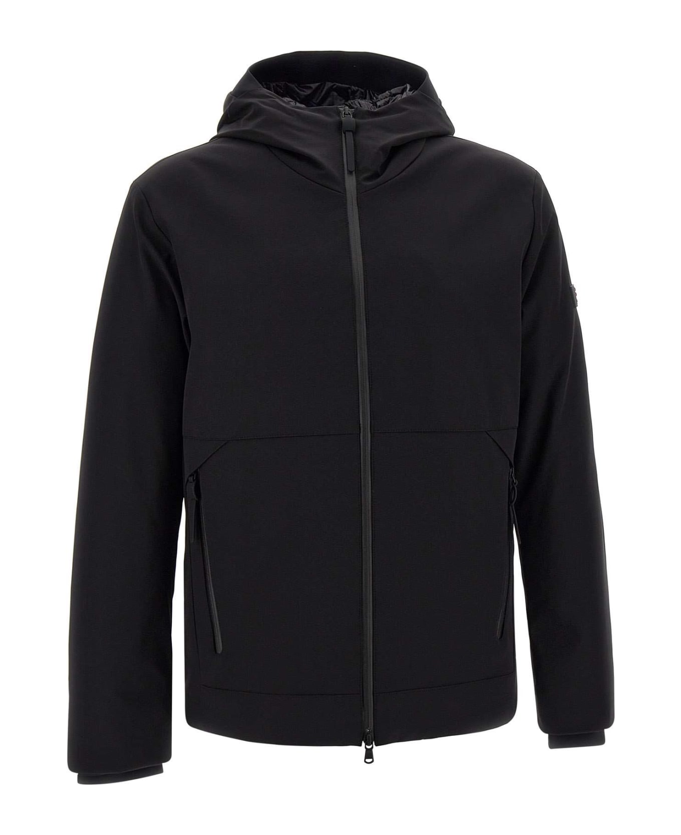 Peuterey 'Loge Md' men's bomber jacket, black, smooth with PrimoLoft padding, hood, double-slider black coated central zip faatening, side pockets with zip, windproof cuffs, ideal for autumn and winter season.