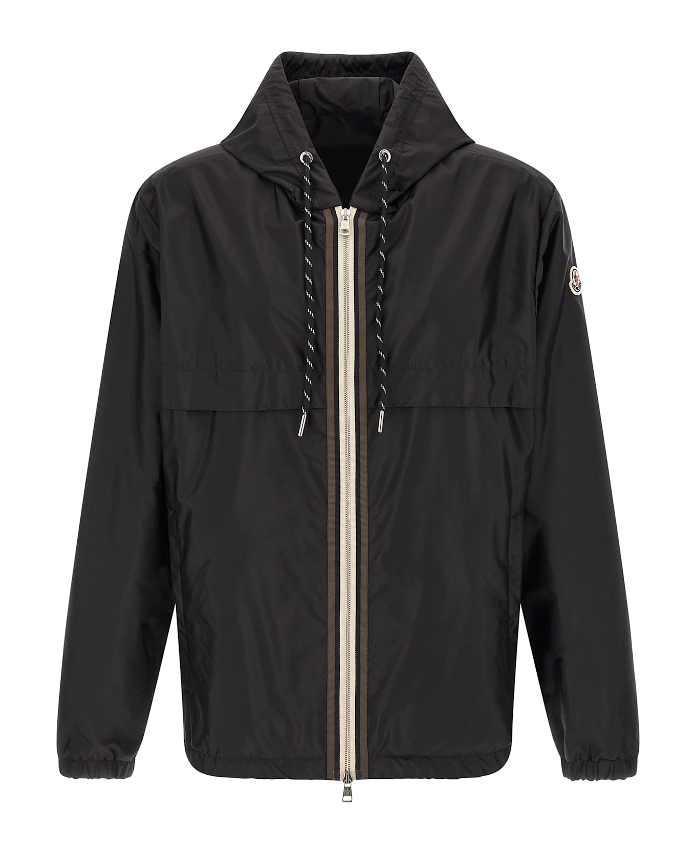 'Nidge' jacket in water-repellent technical nylon, unlined, adjustable hood, high neck, front zip closure with tricolor grosgrain piping, pockets, long sleeves with elastic cuffs, drawstring on the hem.