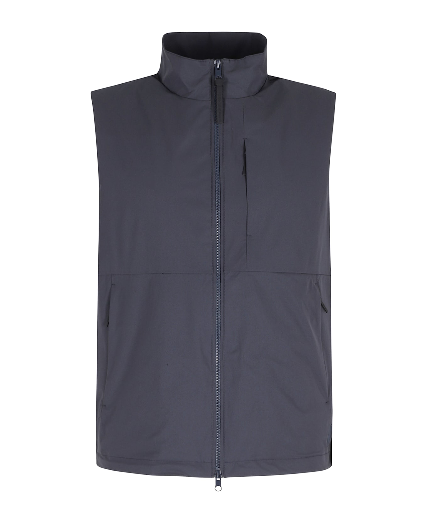 Category: Vest Article: Ichi Vest Brand: People Of Shibuya Color: Navy Blue Collar: Crew Neck Pockets: Three welt pockets with zipper closure Details: Inside pocket with zipper closure on the back, Drawstring side interior Closure: With zipper on the front SIZE AND FIT Fit: Regular Sleeve: Sleeveless