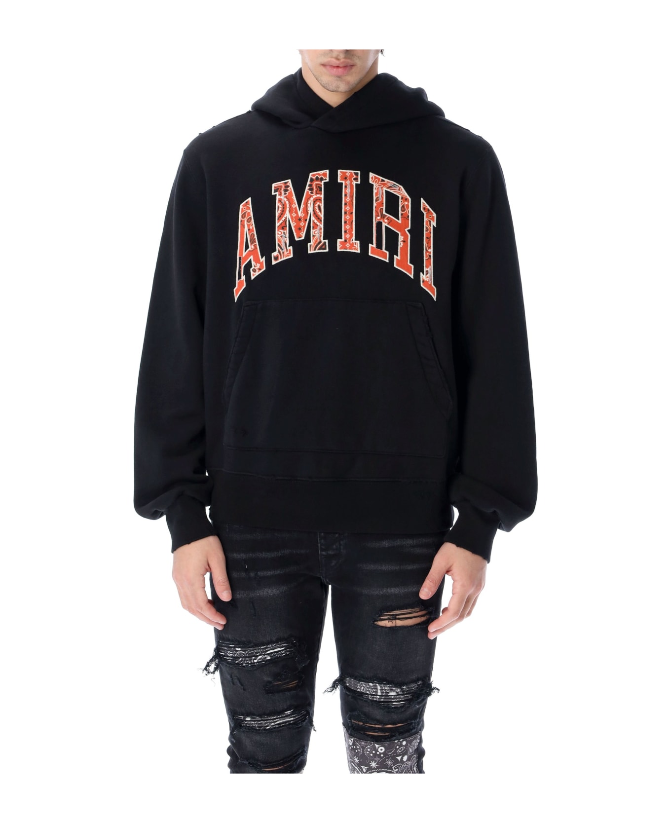 Black Cotton Bandana Applique Hoodie By Amiri. Featuring: - Classic Hood - Worn Out Details - Long Sleeves - Ribbed Cuffs - 'amiri' Patch At Front With Bandana Motif - Kangaroo Pocket - Straight, Ribbed Hem - Plain Back