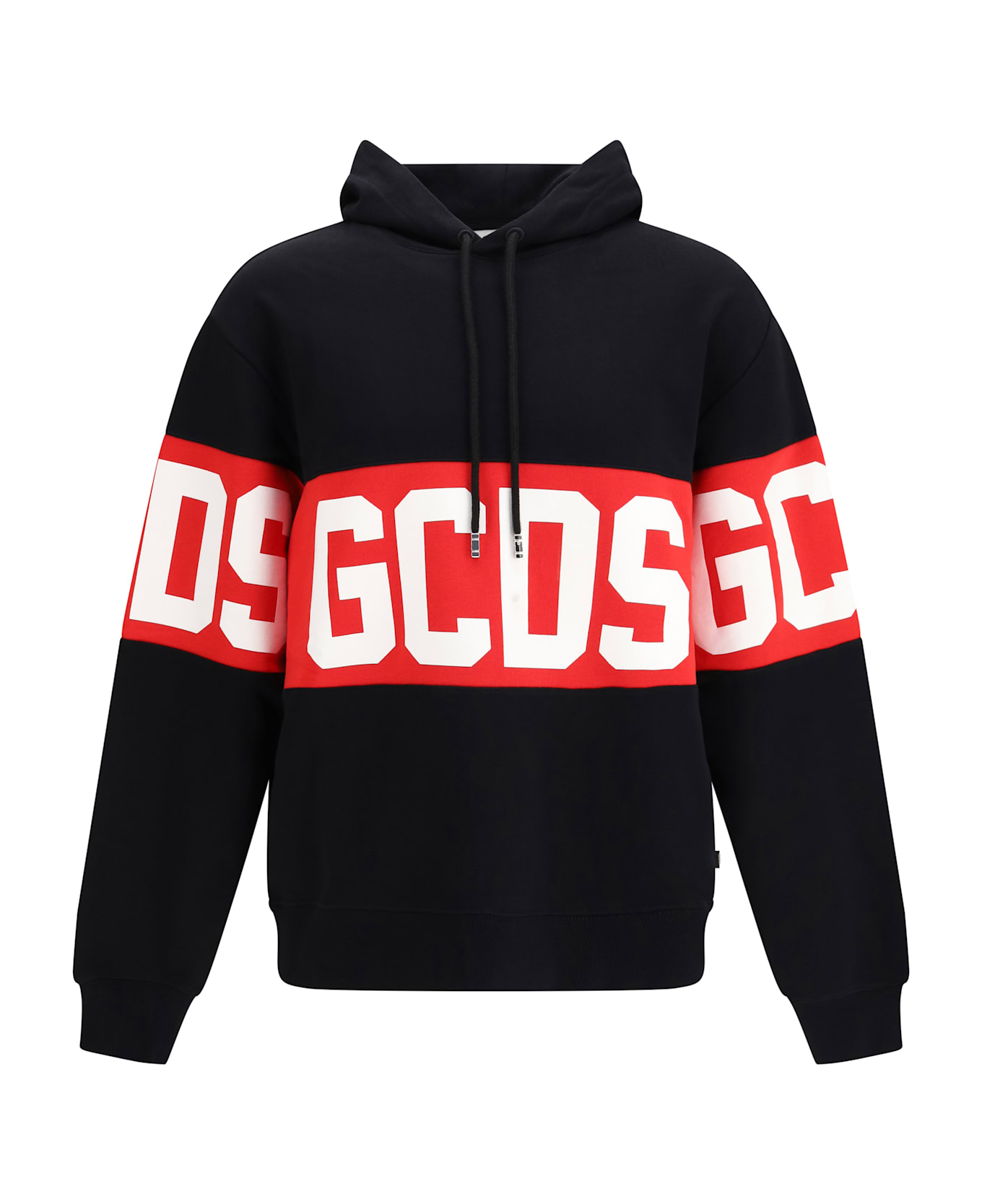 The cotton hoodie with logo band and regular fit by gcds features a front gcds cordonetto embroidery and grosgrain bands applied on the left sleeve. the adjustable drawstring hood and ribbed trims complete a clean yet carefully detailed construction that blends comfort with strong brand identity. the balanced silhouette moves naturally, making this hoodie by gcds a distinctive piece with contemporary character.