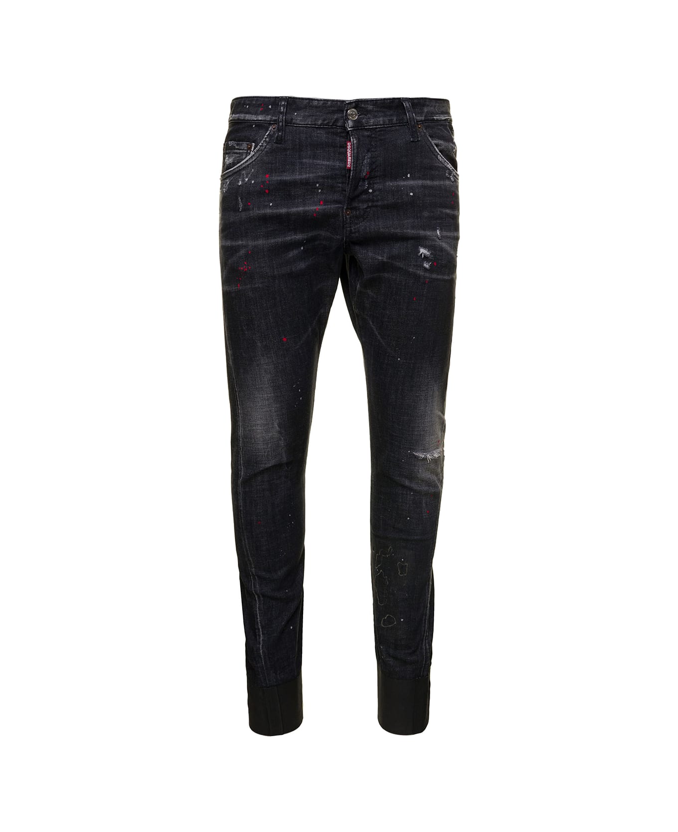 'sexy Twist' Black Skinny Jeans With Destroyed Effect And Paint Stains In Cotton Denim Man D-squared2
