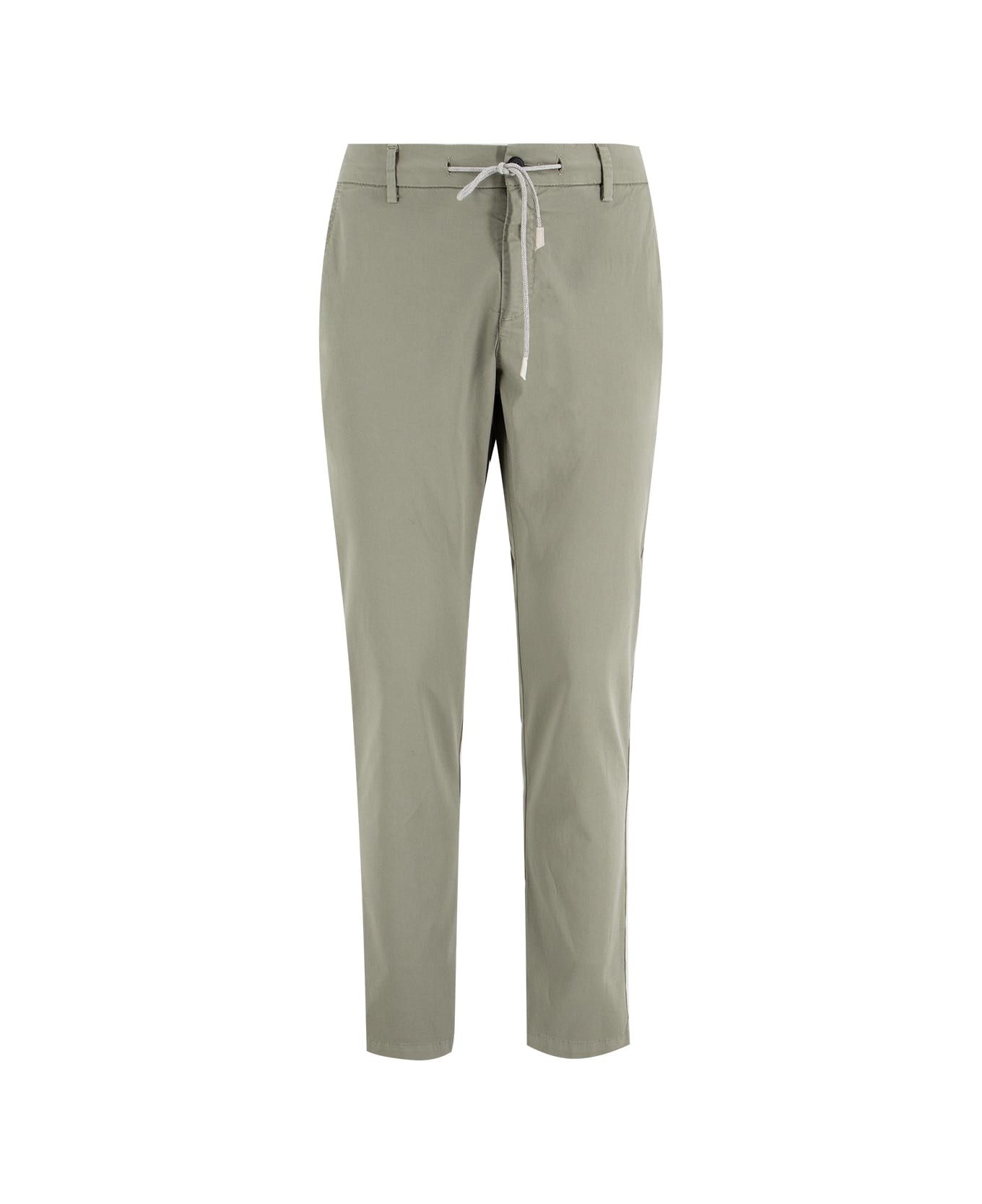 Jogger trousers characterised by elasticated drawstring waist, zip and button fastening, two back flap pockets, slim fit. Composition: 98% CO, 2% EA