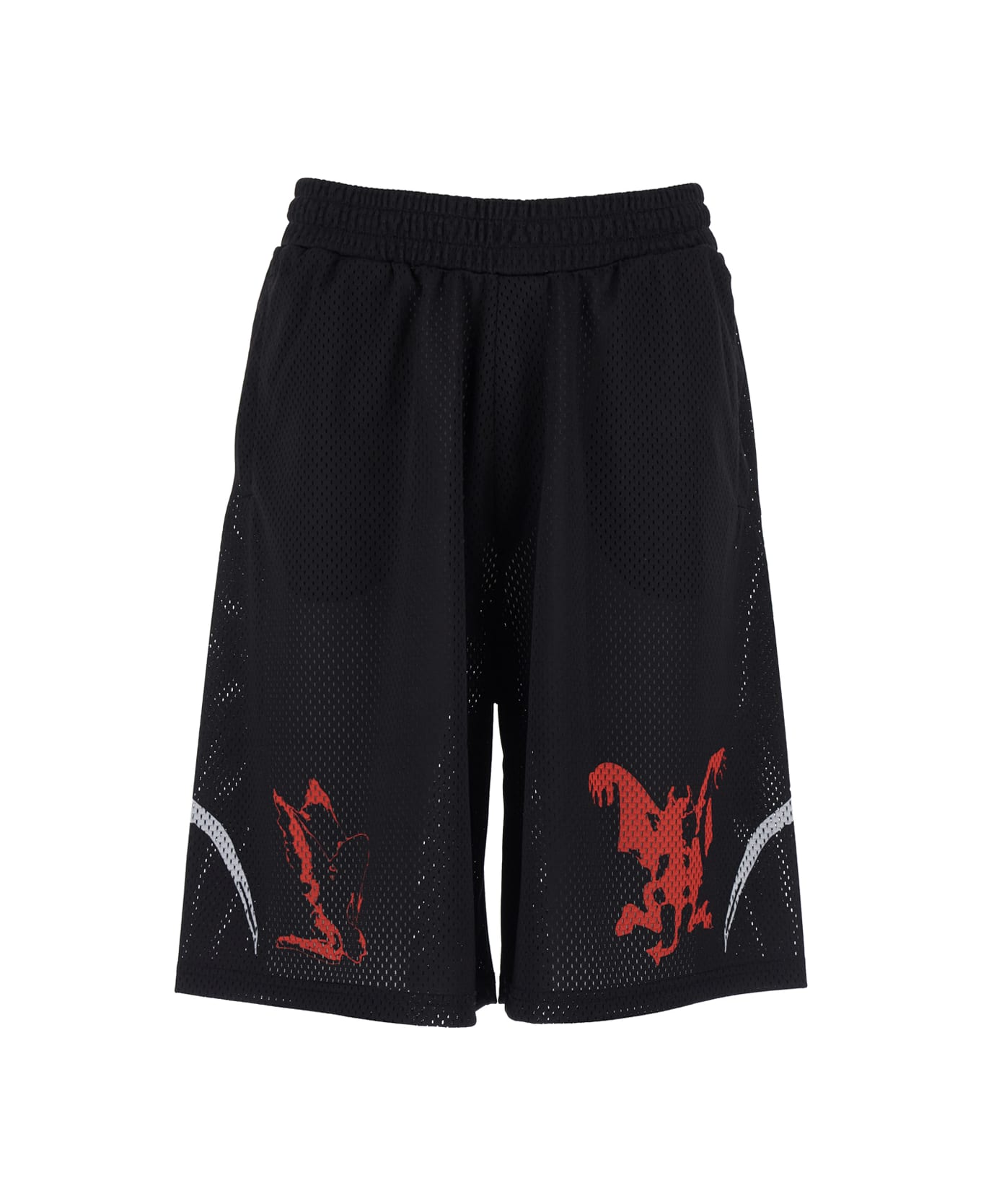 Shorts Black Elasticated waistband Perforated design Two side slit pockets Print on front and back Straight hem Oversized fit