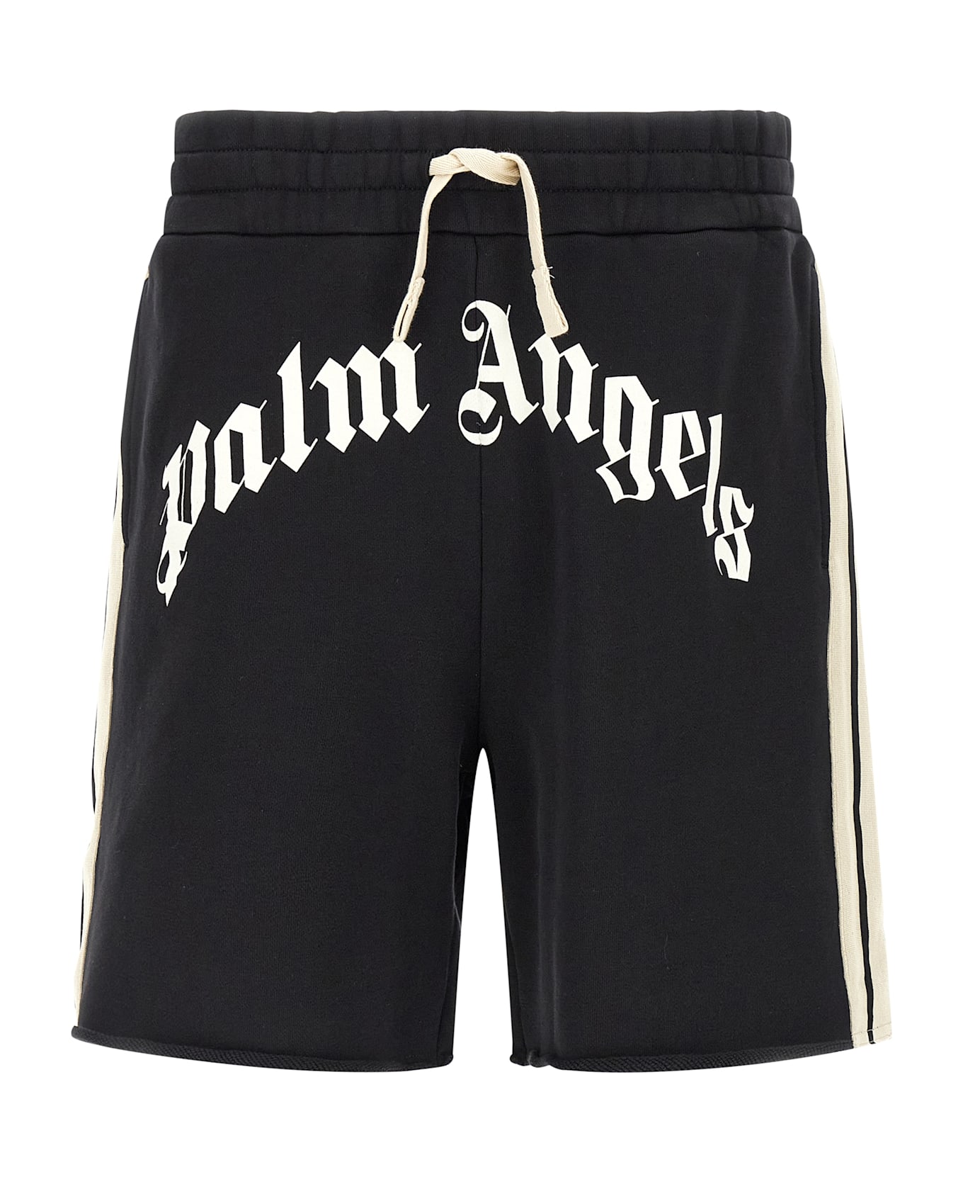 'Curved Logo Track' gauze cotton bermuda shorts with contrast stripes on the sides, 'Curved Logo' graphic print on the front, drawstring elastic waistband, pockets, leg bottoms with raw cut hem. Composition: 100% cotton