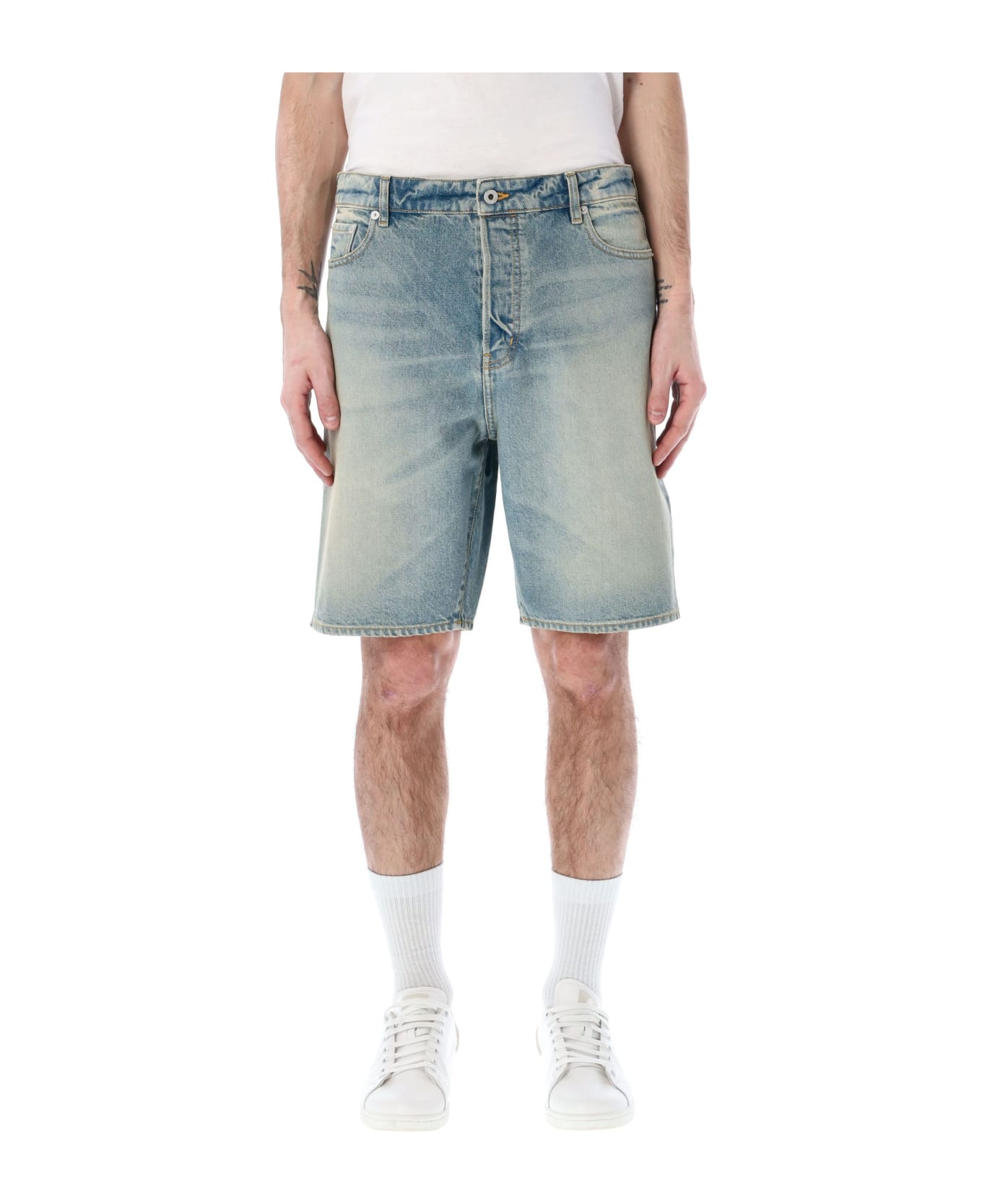 Denim Bermuda Shorts By Kenzo. Featuring: Button Fastening Belt Loops Five Pockets Washed Denim Kenzo Label At Back Pocket Model Is 1,90 M Tall And He Is Wearing Size 32