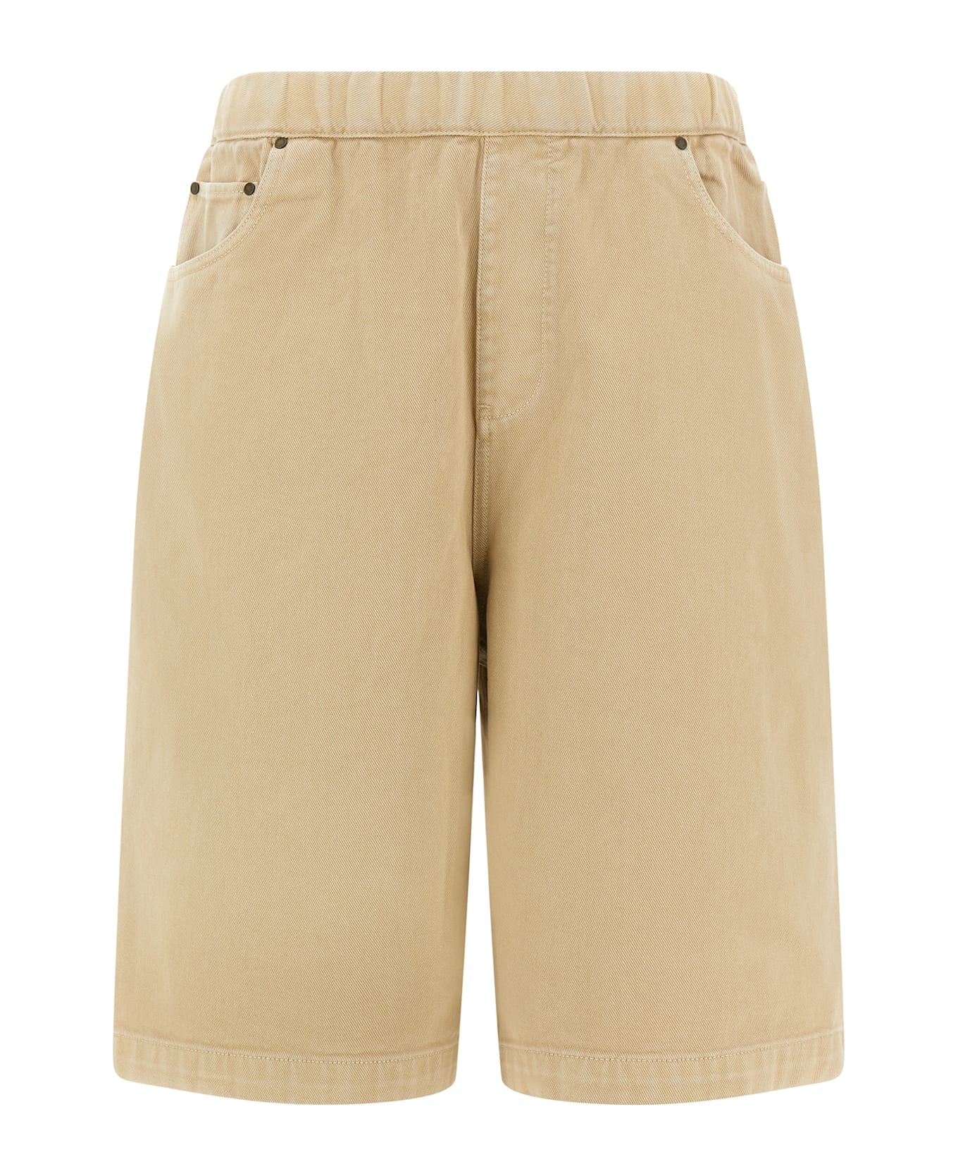 'Spar' cotton canvas bermuda shorts, drawstring elastic waistband, trompe l'oeil flap, wide leg, five pockets.