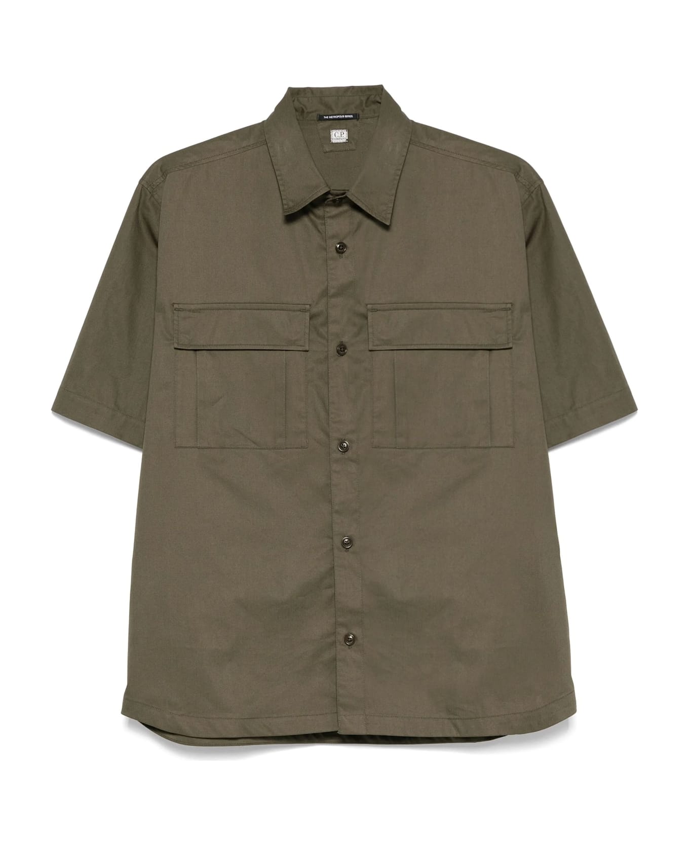 Khaki, Front Button Fastening, Two Chest Flap Pockets, Cutaway Collar, Short Sleeves