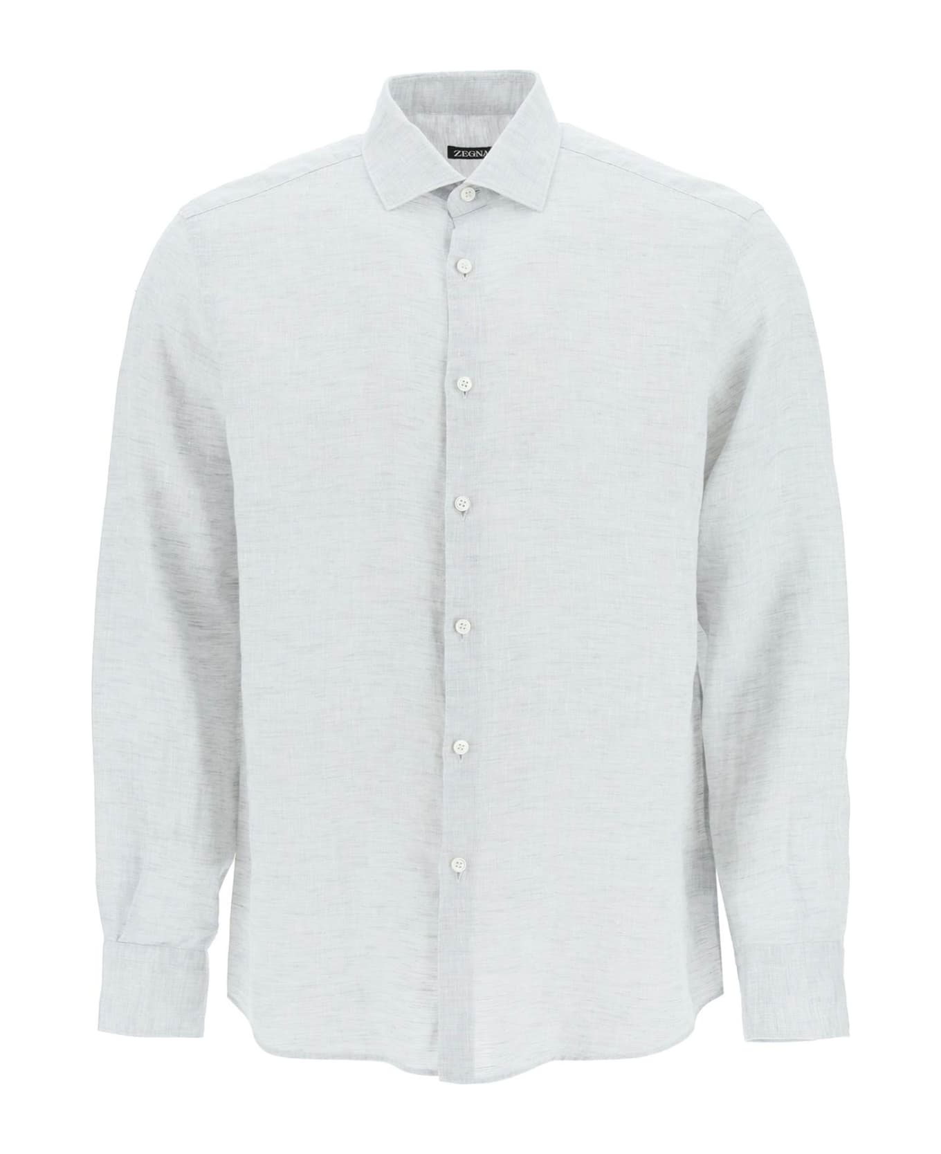 Long sleeved linen shirt by Zegna featuring spread collar, mother-of-pearl button fastening, curved hem and cuffs. Relaxed fit. The model is 187 cm tall and wears a size L. Composition: 100% LI