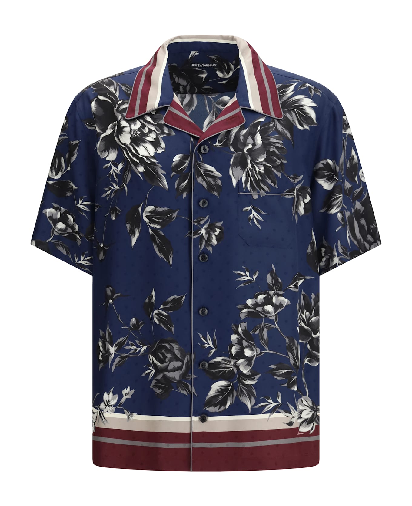 The silk short-sleeve shirt with classic collar, button fastening and all-over print by dolce & gabbana expresses refined elegance through a light and fluid construction. the silk fabric enhances the silhouette with natural movement, while the full-surface pattern adds depth and character to the design. the classic collar shapes the profile with balance, making this shirt by dolce & gabbana a distinctive piece with contemporary appeal.