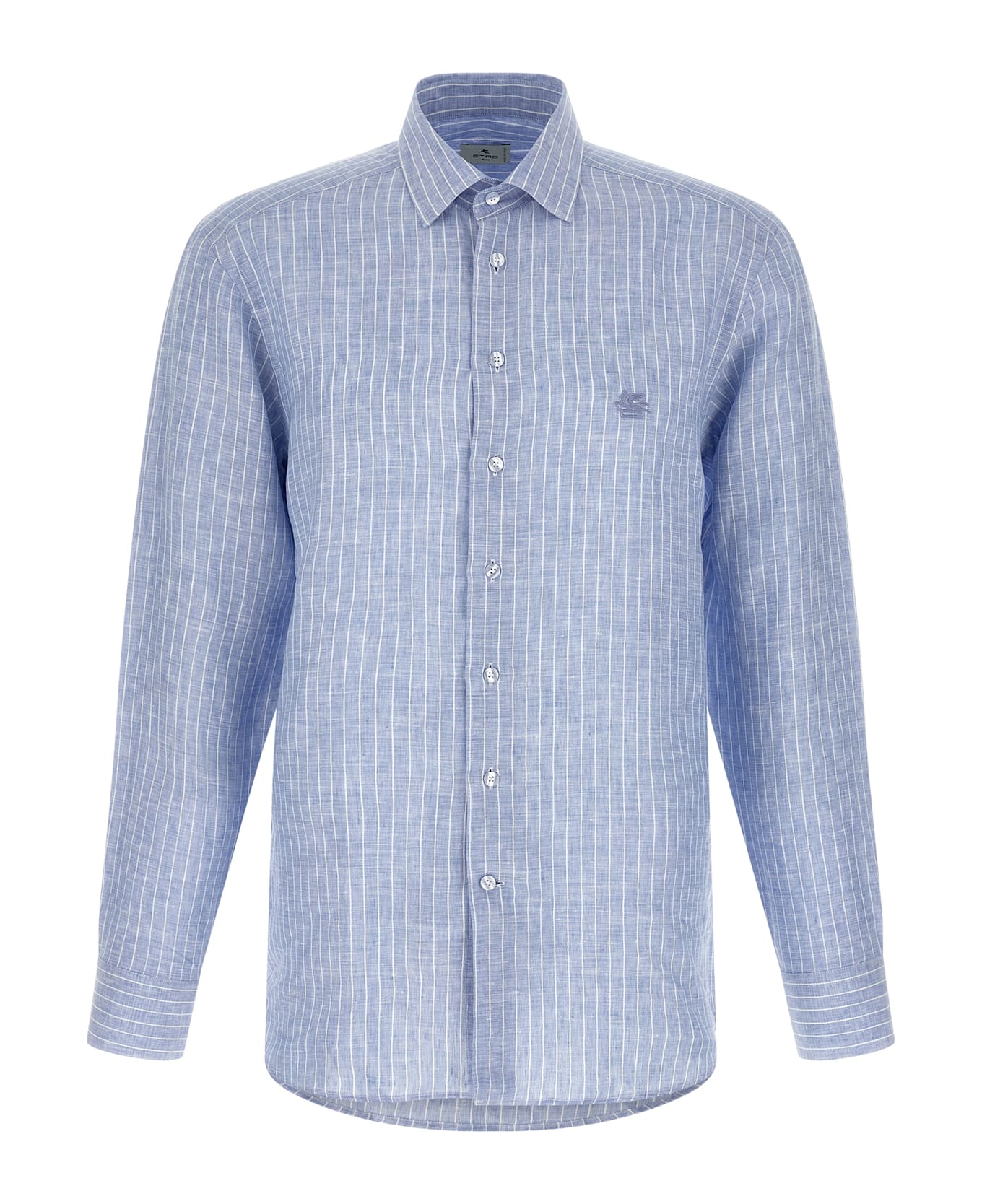 Striped linen shirt, tone-on-tone 'Pegaso' logo embroidery, front button closure, long cuffed sleeves. Composition: 100% linen
