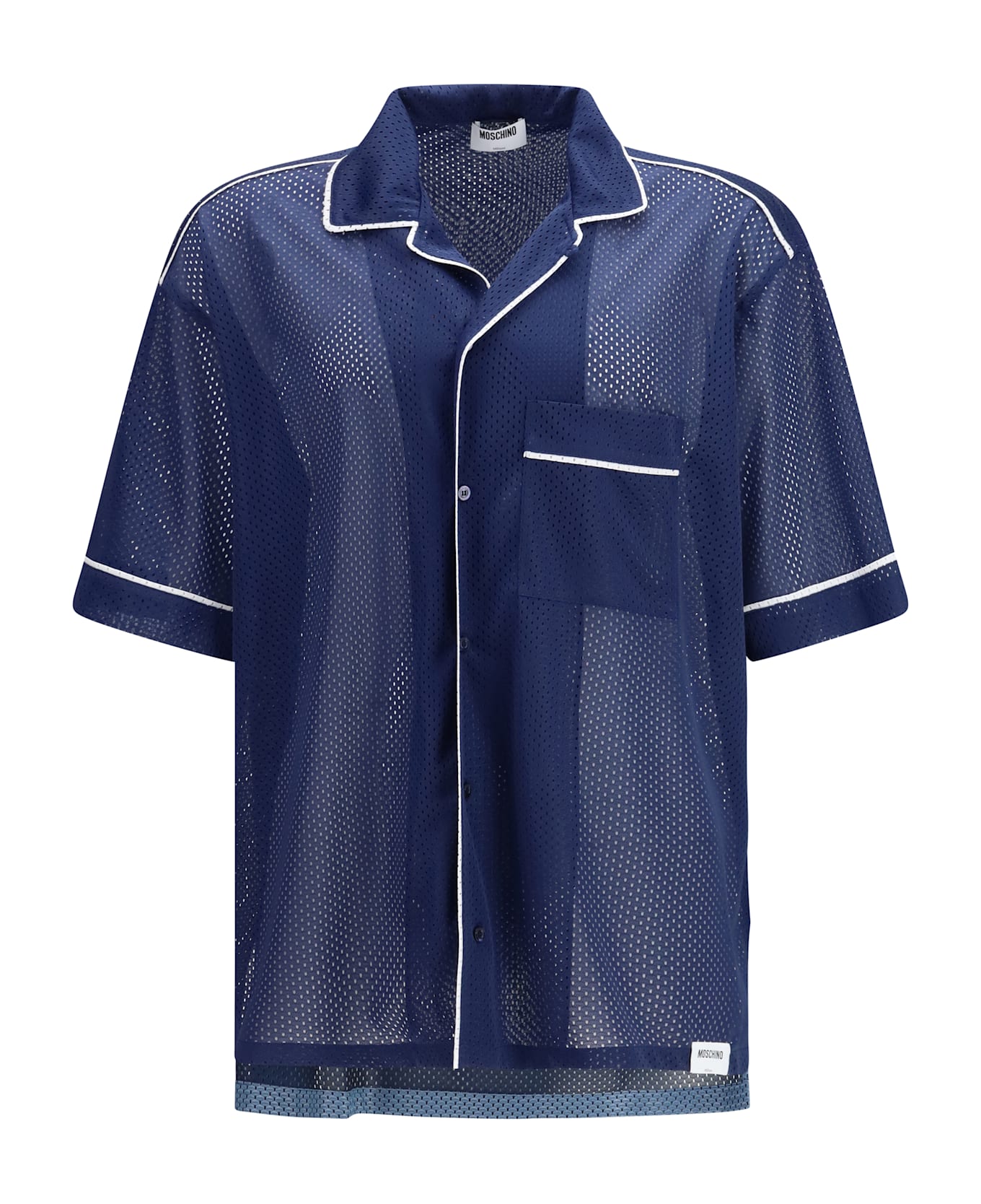 The technical mesh shirt with reversed 22 print by moschino delivers a sporty aesthetic through an ironic and contemporary design approach. crafted in technical mesh, it features a loose fit defined by wide short sleeves and dropped shoulders that enhance its relaxed attitude. the front print of the number 22 placed upside down creates an unexpected and distinctive graphic statement. a t-shirt designed to express personality and urban confidence with lightness and visual impact. Composition: 100% % Polyester