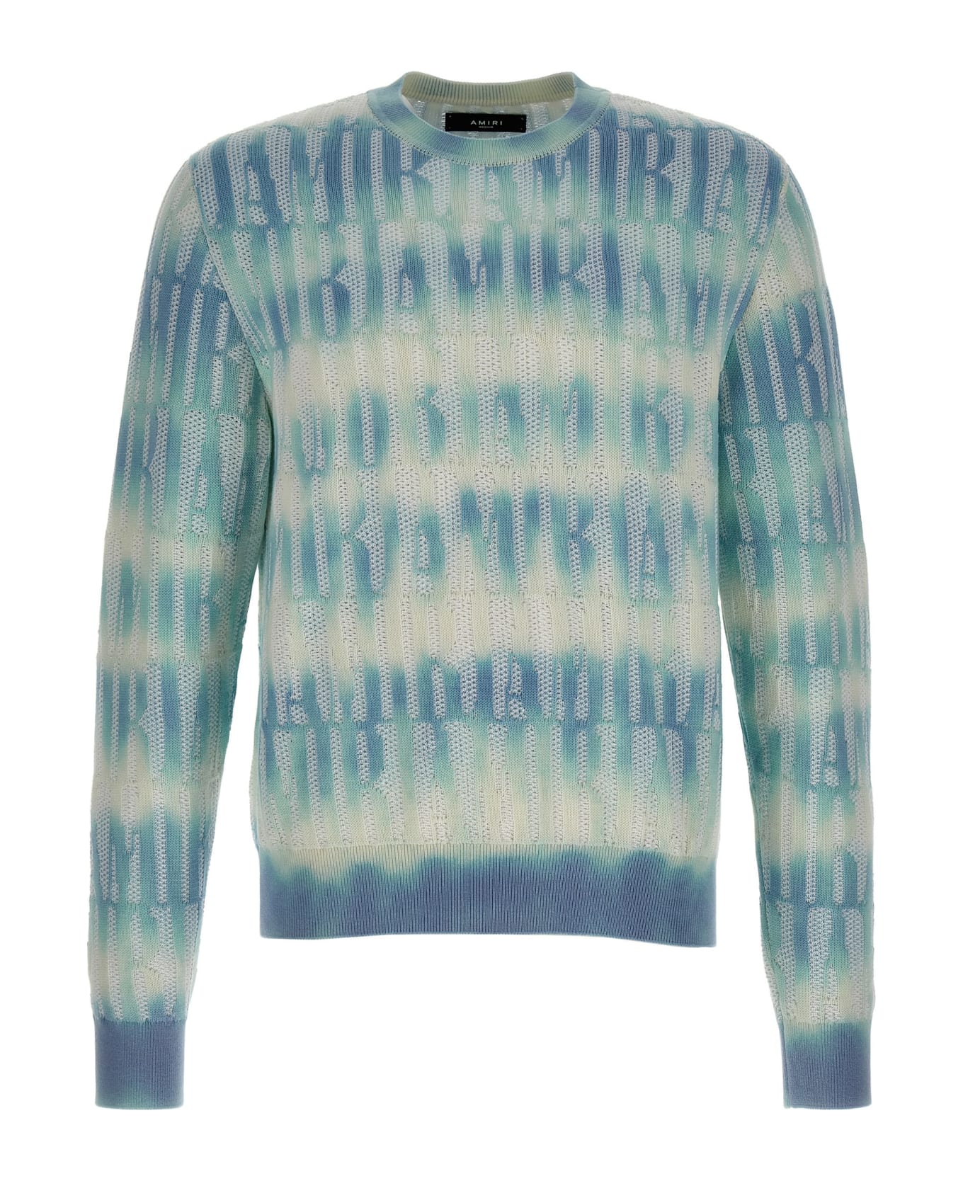 Amiri Repeat' cotton blend sweater with all over logo pattern, crewneck, and long cuffed sleeves.