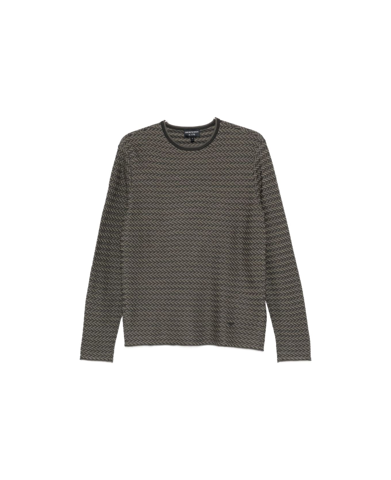 green patterned knit round neck long sleeves ribbed hem ribbed cuffs Composition: 100% Virgin Wool