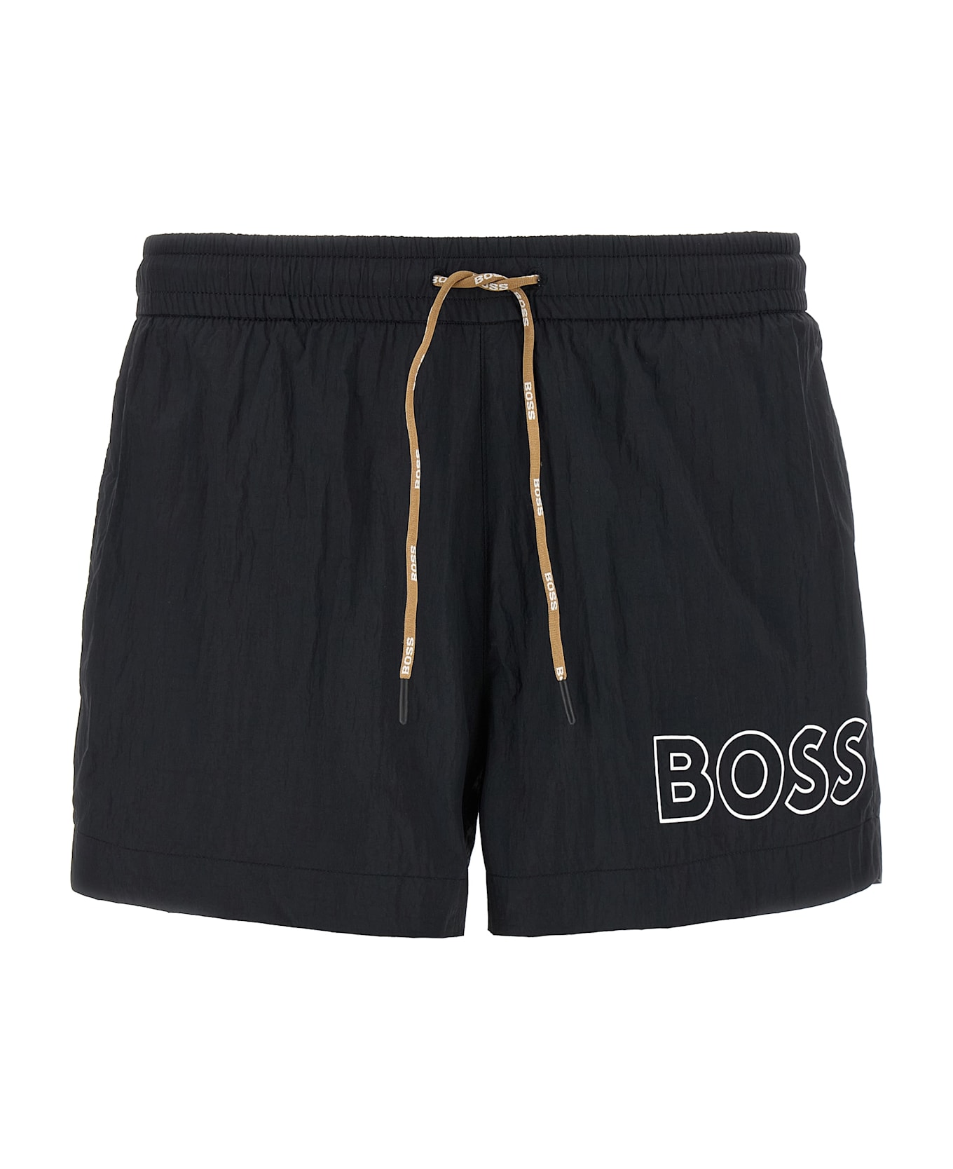 'Mooneye' swimsuit in quick-drying technical fabric, short model, front logo print, adjustable drawstring elastic at the waist, pockets, inner mesh briefs. Composition: 100% polyamide