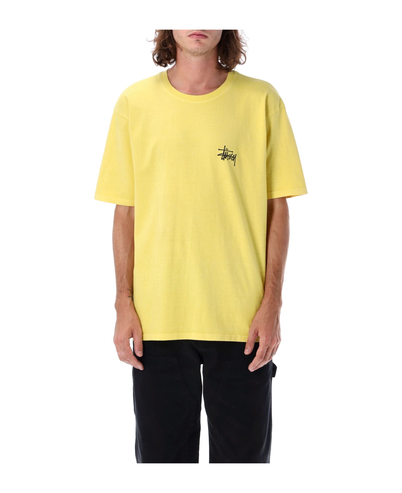 Cotton Basic Logo Pigment Dyed T-shirt By Stüssy. Featuring: Crew Neck Short Sleeves Screenprinted Logo At Chest And Back The Model Is 1,90 M Tall And He's Wearing Size L