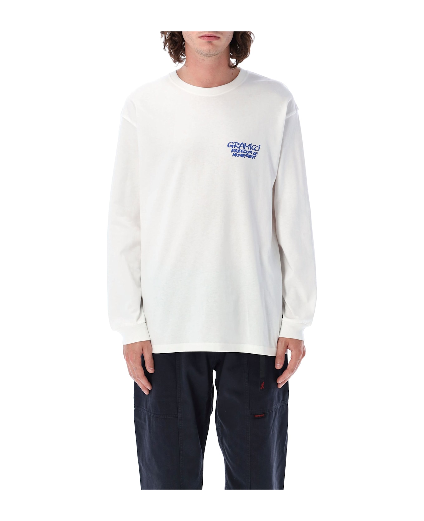 Cotton Napping Climber T-shirt By Gramicci. Featuring: Ribbed Crew Neck Long Sleeves With Ribbed Cuffs Dropped Shoulders Logo Print At Chest Large Graphic Print At Back Straight Hem Relaxed Fit Model Is 1,90 M And Wears Size L