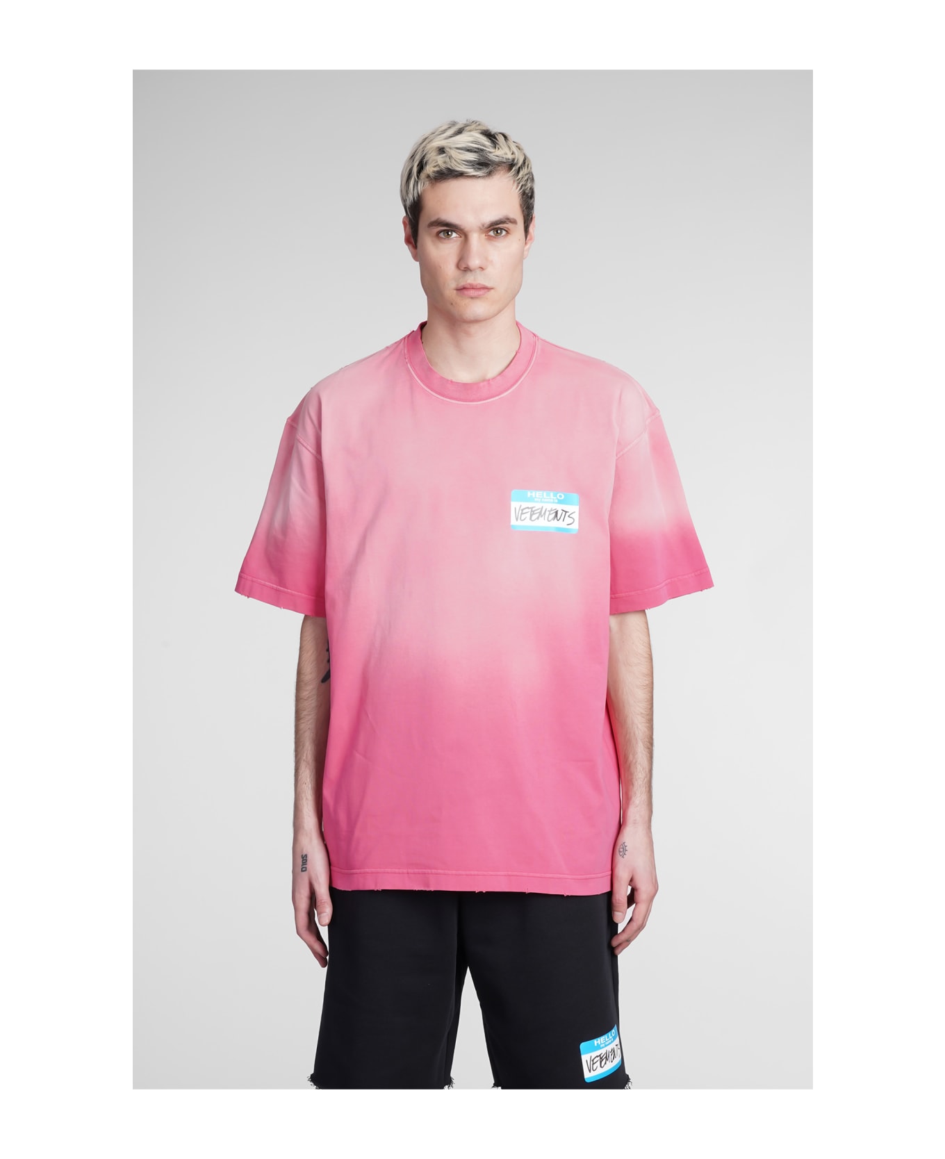 T-Shirt in rose-pink cotton, print on cheest, short sleeves, round neck, back print, tie dye print, 100% cotton, Made in Portugal, Model is 1. 83 and wears size M