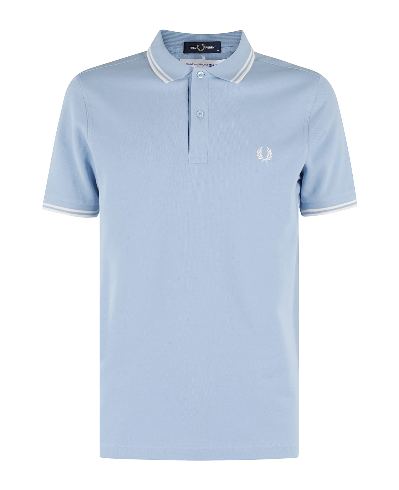 Polo shirt - Commes des garcons shirt x Fred perry - Sky blue color - Polo collar with contrasting white piping - Front buttons - Short sleeves with contrasting white piping - Upper Fred Perry logo - "Strong will" slogan print on back