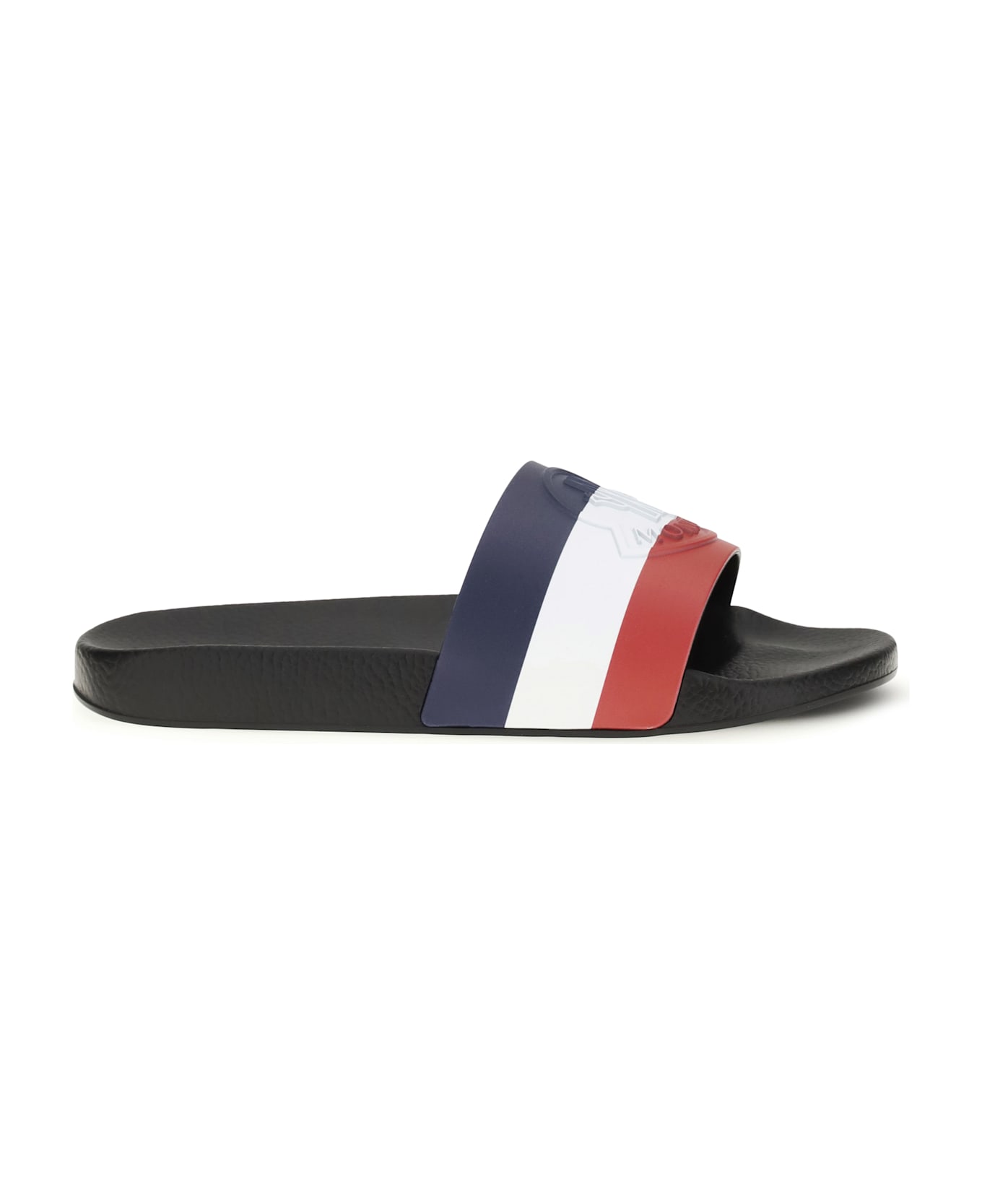 The basile slippers by moncler are a timeless classic from the brand. crafted from rubber, they stand out thanks to their distinctive tricolor strap at the toe. comfortable and practical, they re perfect for adding a relaxed, stylish touch to summer outfits.