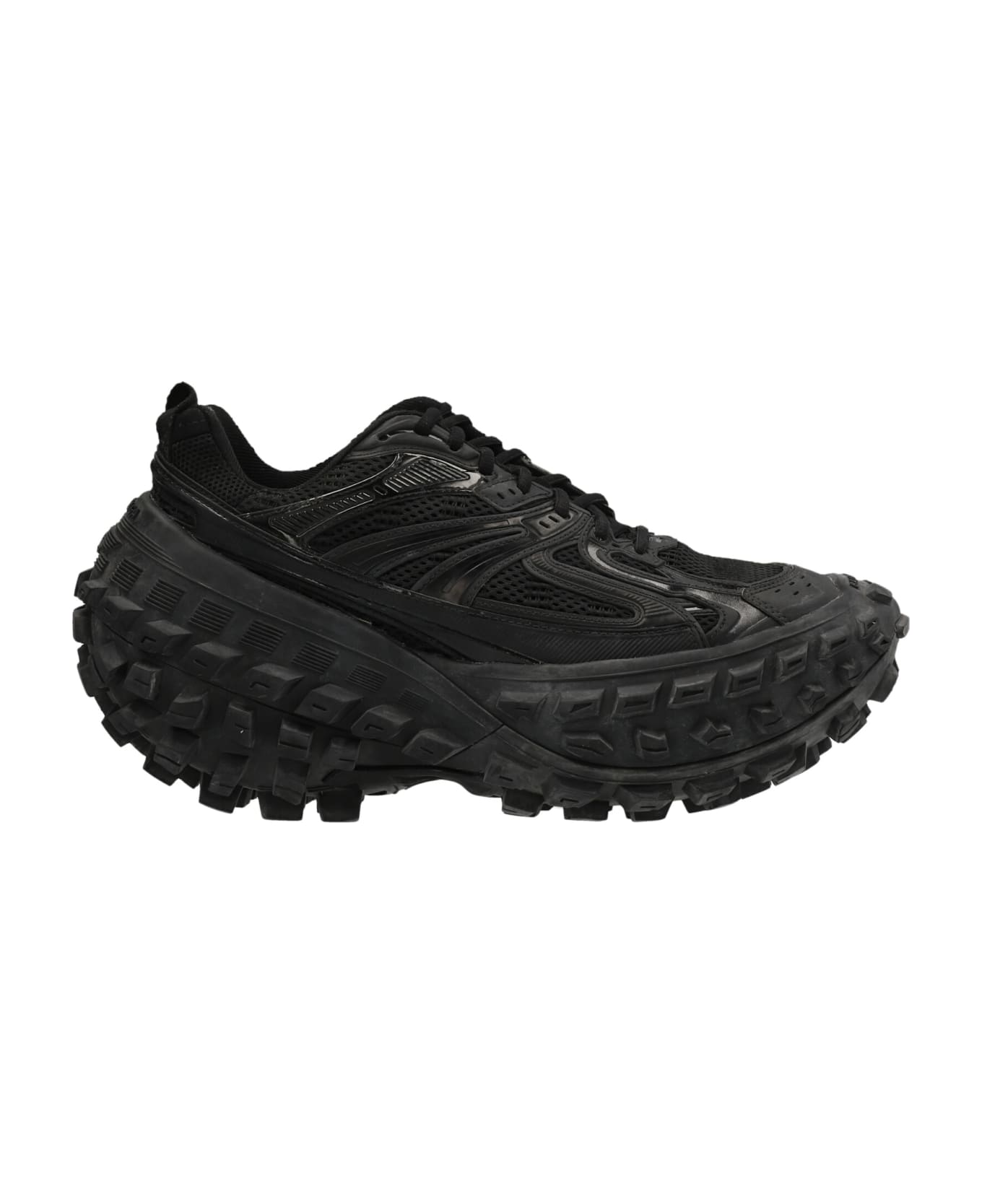 Bouncer' black mesh and nylon sneakers with used effect, tough outsole, logo embossed on the tongue, logo and size embossed on the toe edging and back, a pull-on back loop.