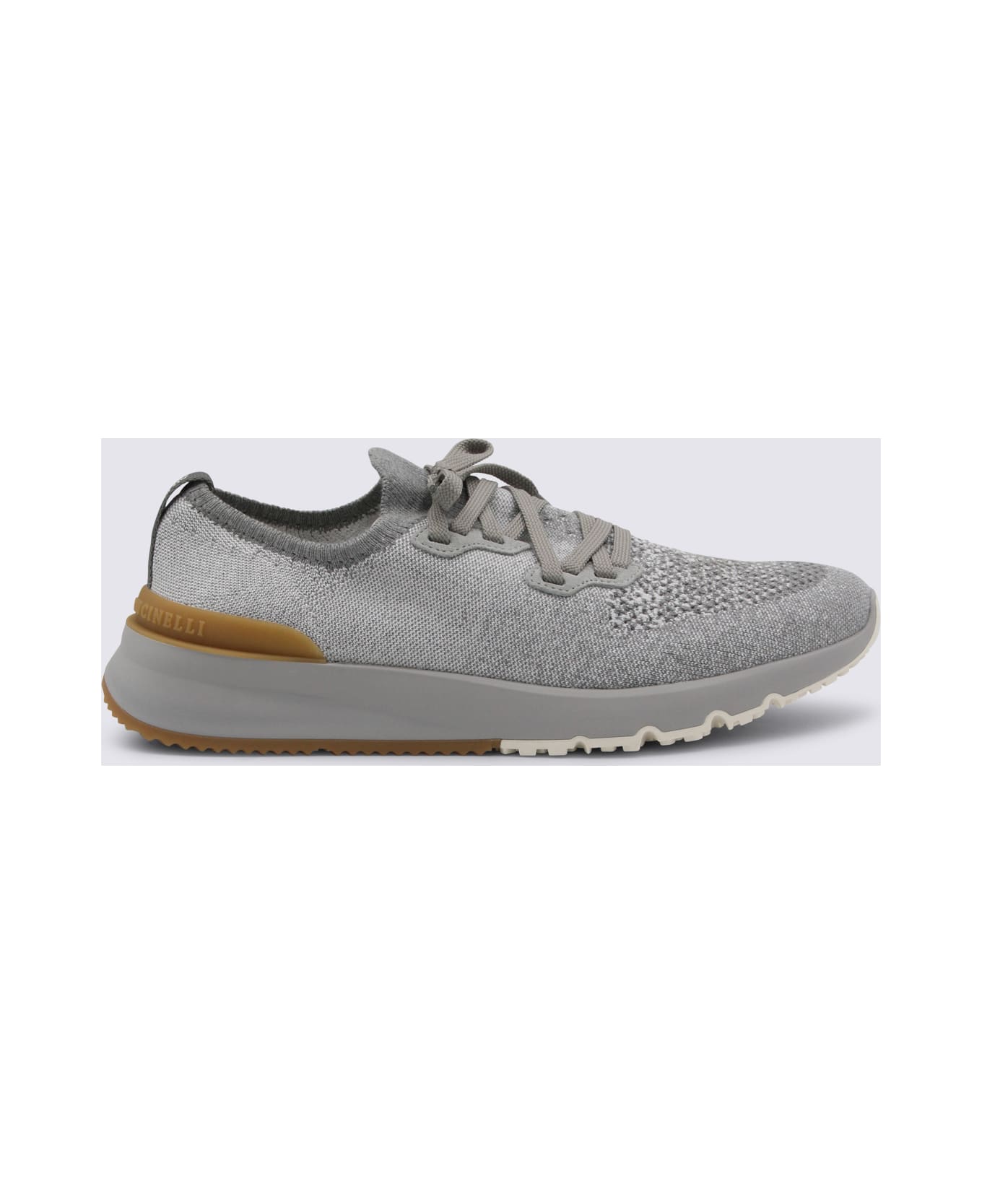 Grey knit sneakers from Brunello Cucinelli with sole in lightweight micro rubber, semi polished calfskin trim and flat fabric laces. Composition: _cover, 100% Le Sole, 100% Elastodiene