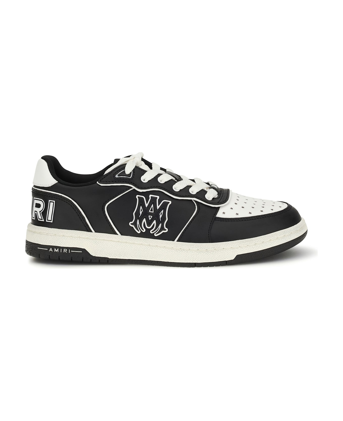 The newport sneakers by amiri reinterpret the classic leather sneaker with a contemporary, worn-in aesthetic. crafted from leather, they feature logo details that add a distinctive signature touch, while the vintage effect gives the model an authentic, slightly worn look, true to the brand s style. the clean, versatile silhouette makes them ideal for completing casual and urban looks with a refined edge.