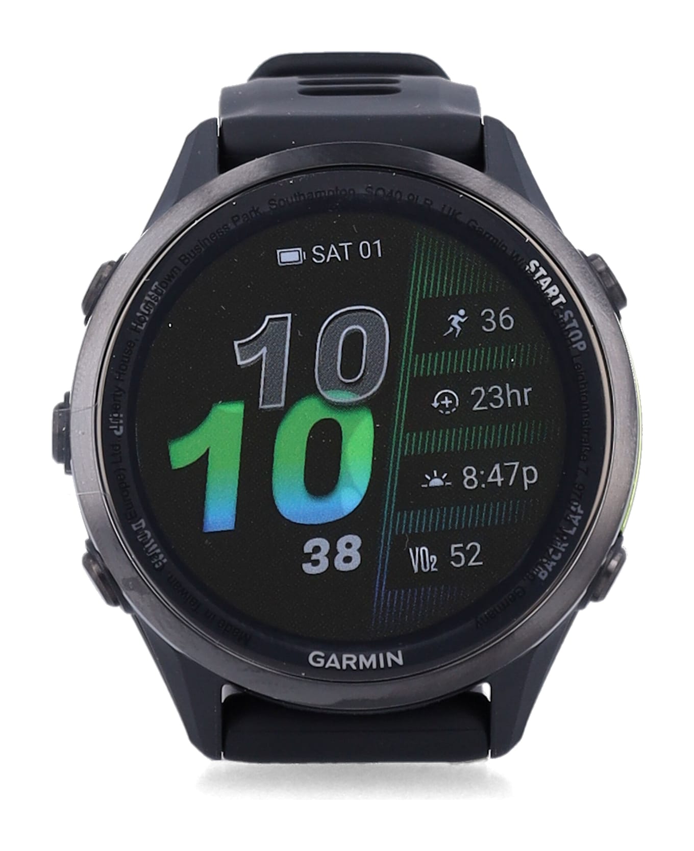 The Garmin Forerunner® 970 Is A High-performance Smartwatch Built For Dedicated Runners, Triathletes, And Endurance Athletes. Featuring A Vibrant Amoled Touchscreen With Optional Always-on Mode, It Delivers Advanced Training, Recovery, And Navigation Tools In A Sleek Titanium Bezel With Sapphire Crystal Lens. With Up To 15 Days Of Battery Life In Smartwatch Mode, It Includes Multi-band Gps With Satiq , Built-in Mapping, And The Garmin Elevate Heart Rate Monitor For Precise Performance Tracking. Wellness Features Range From Advanced Sleep Insights With Coaching To Pulse Ox, Body Battery , Stress Monitoring, Meditation, And A Jet Lag Adviser. The Integrated Led Flashlight, Garmin Pay , Music Storage, And Smartphone Call/text Capabilities Make It As Practical As It Is Powerful. Amoled Display With Touchscreen And Always-on Option Up To 15 Days Battery Life In Smartwatch Mode Multi-band Gps With Satiq , Glonass, Galileo, Qzss, Beidou Built-in Mapping And Enhanced Navigation Pulse Ox, Ecg App, Skin Temperature, Respiration Rate Training Readiness And Improved Training Status Metrics Advanced Sleep Tracking, Nap Detection, Women s Health, Hydration Led Flashlight, Garmin Pay , Music Storage Make Calls And Send Texts Via Paired Smartphone Titanium Bezel, Sapphire Crystal Lens, Silicone Strap Water Rating: 5 Atm