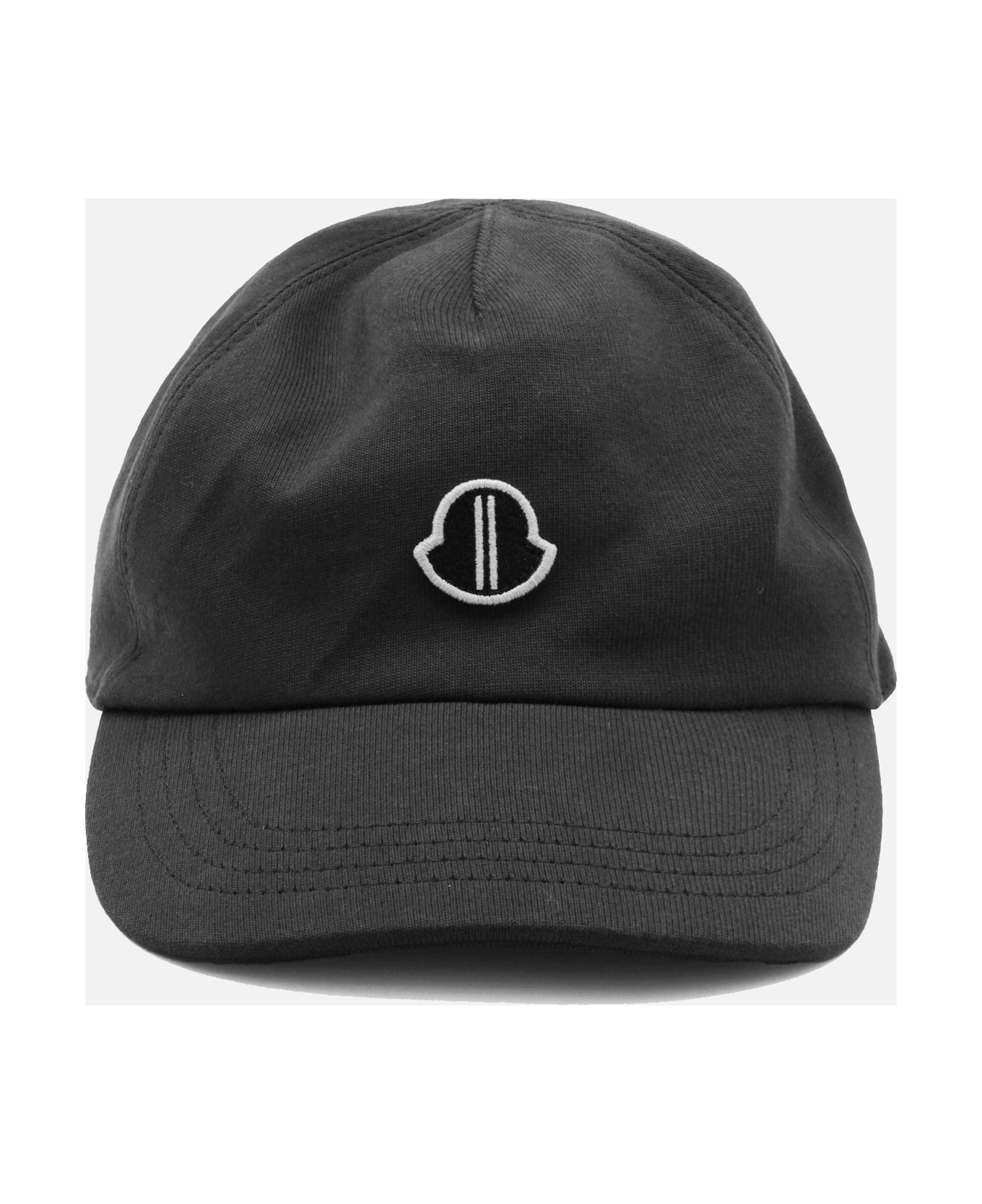 Black cotton hat from Moncler + Rick Owens featuring adjustable tab closure on the back and embroidered logo.
