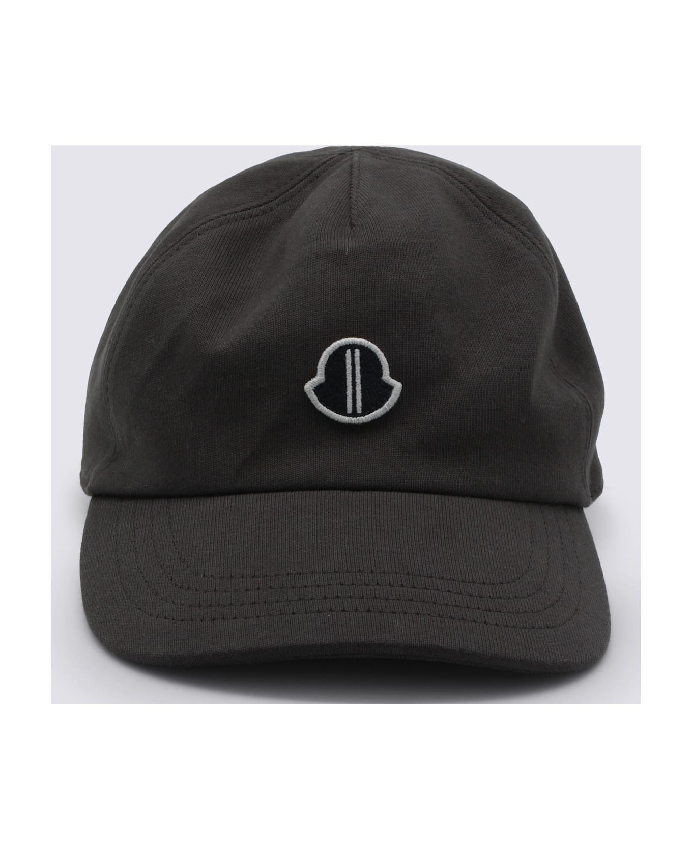 Dark grey cotton hat from Moncler + Rick Owens featuring adjustable tab closure on the back and embroidered logo.