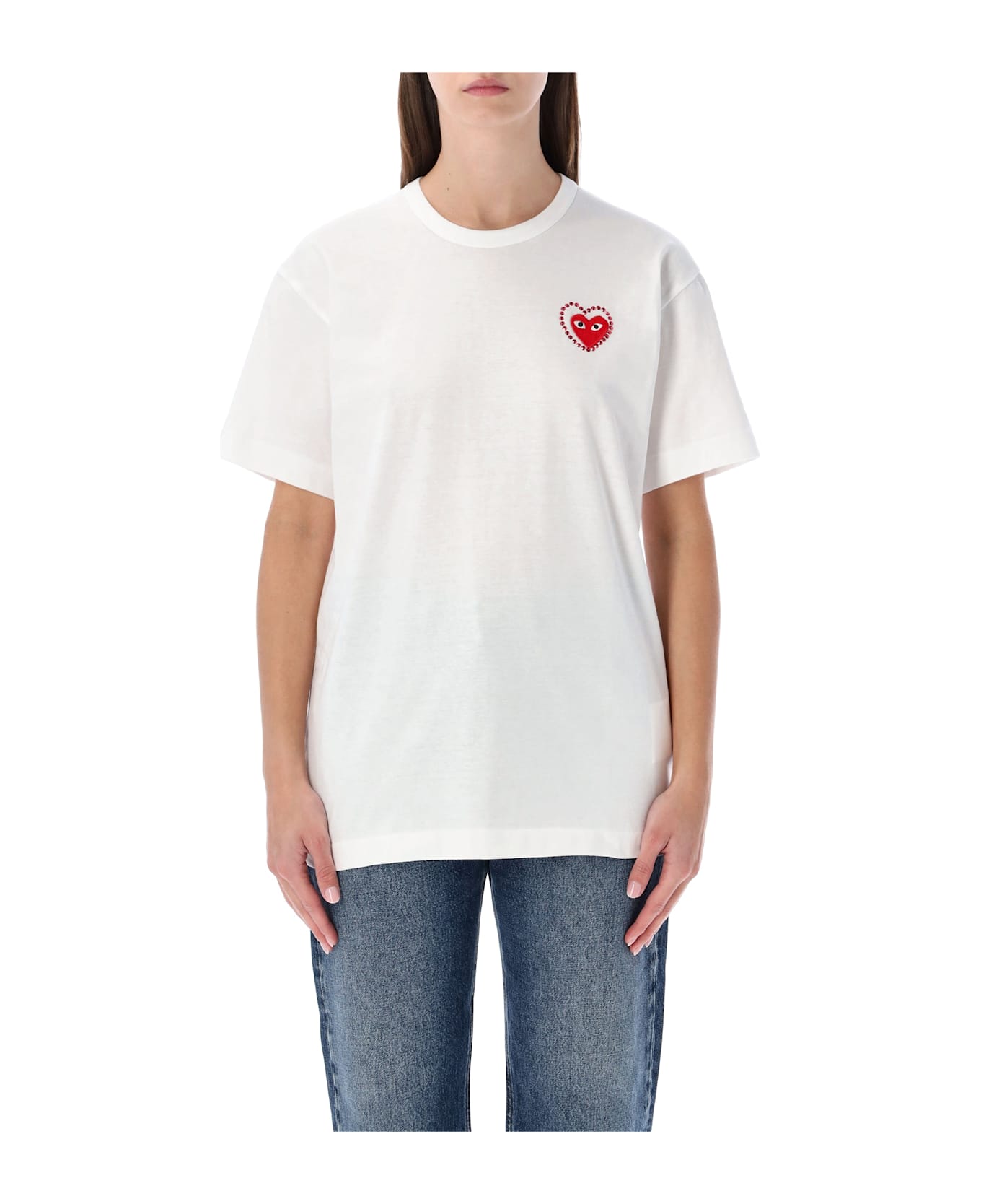 Comme Des Garçons Play White Cotton T-shirt With Crystal Heart