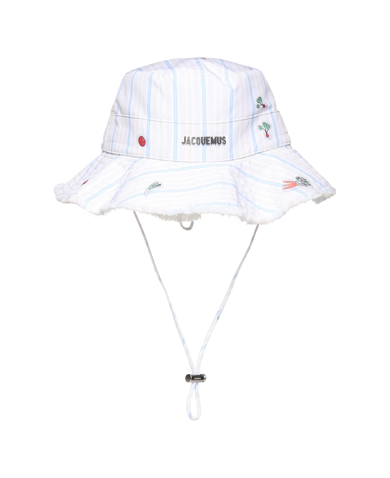 - Made of striped cotton poplin - Long adjustable strap - Metal logo - Frayed edges - Designer color: Jacquard Classic Stripes