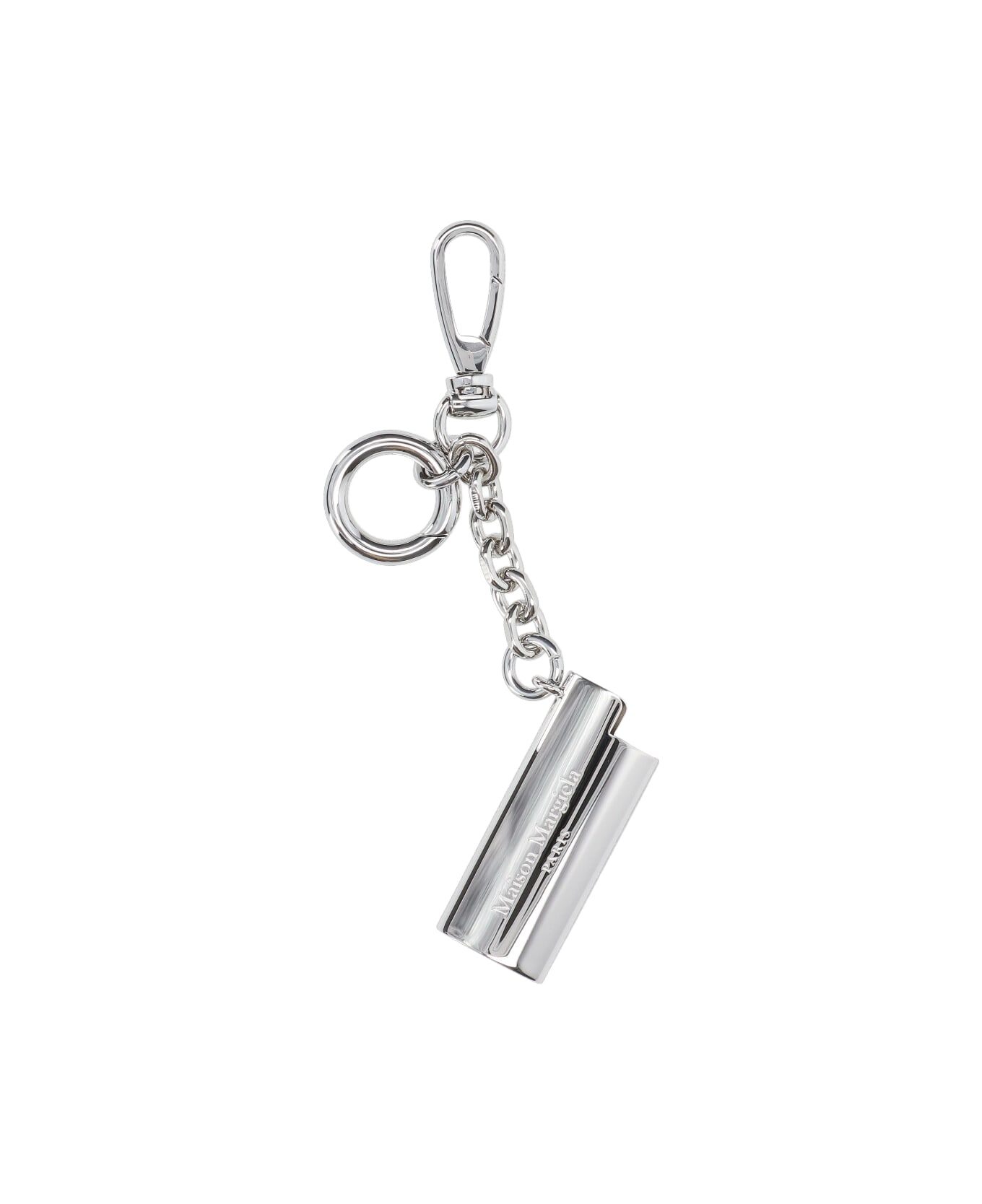Maison Margiela lighter charm in silver-plated brass, hook closure, tone-on-tone embossed logo detail. Composition: 100% Brass