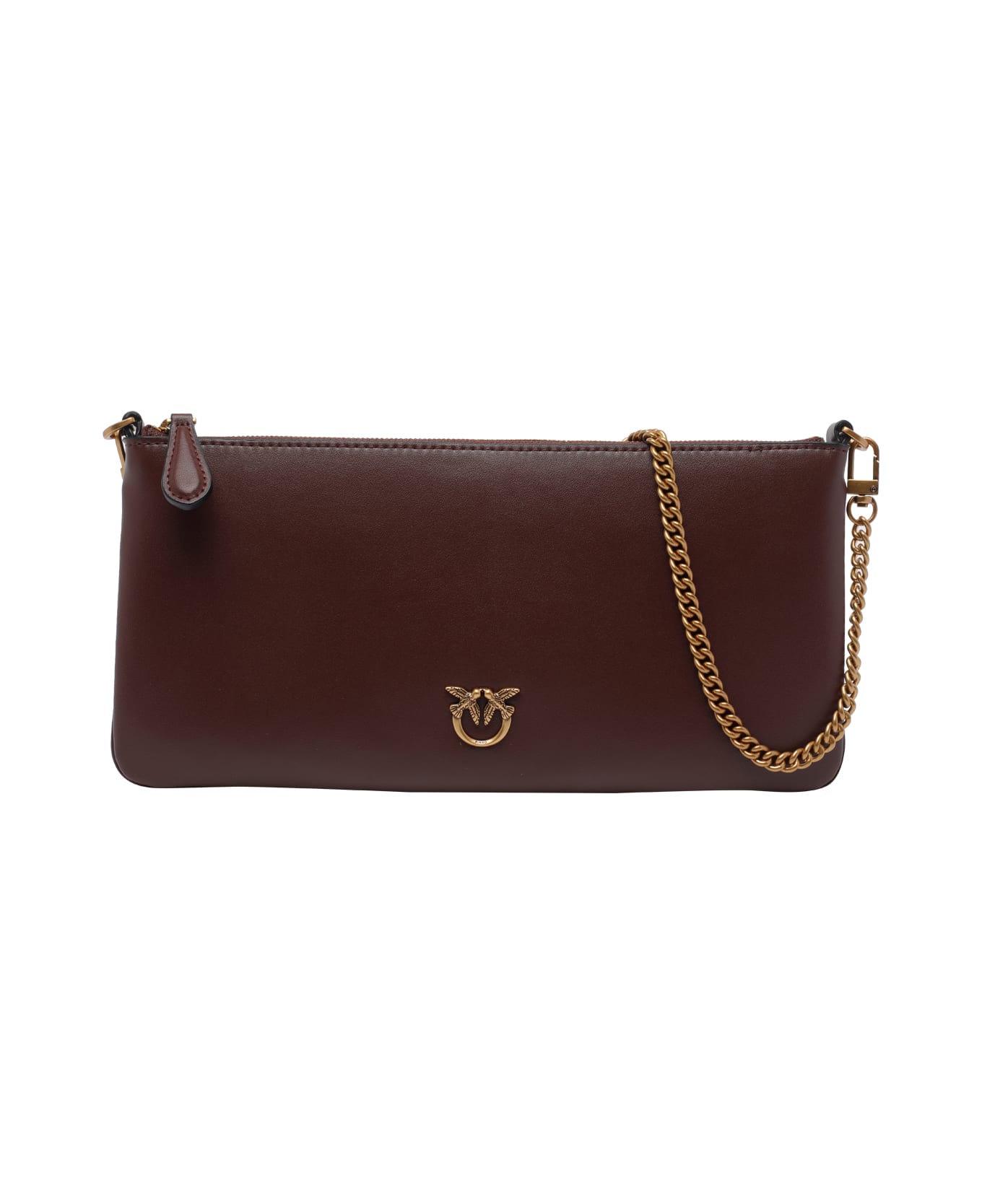 Pinko burgundy Classic Flat Love Simply bag, zip closure, inner zipped pocket, 3 slots, chain strap, frontal golden mini logo Composition: 100% Calf Leather