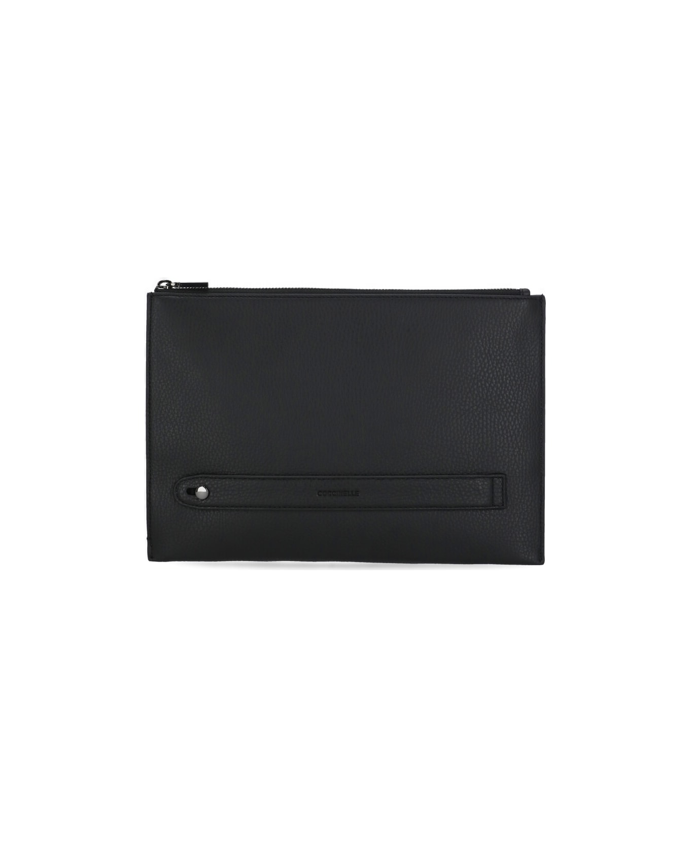 - Black Coccinelle pebbled leather pochette for woman - Interior welt pocket - Eight interior cards holder pockets - Zip fastening
