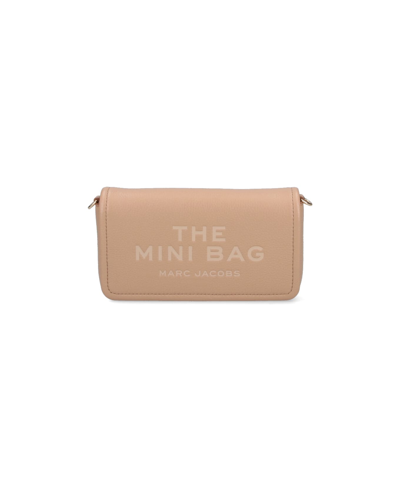 Marc Jacobs 'The Leather' mini bag in beige hammered leather with adjustable and removable shoulder strap, magnetic flap closure, embossed logo detail, back logo patch, eight inner card slots, inner flat pocket, main inner compartment.