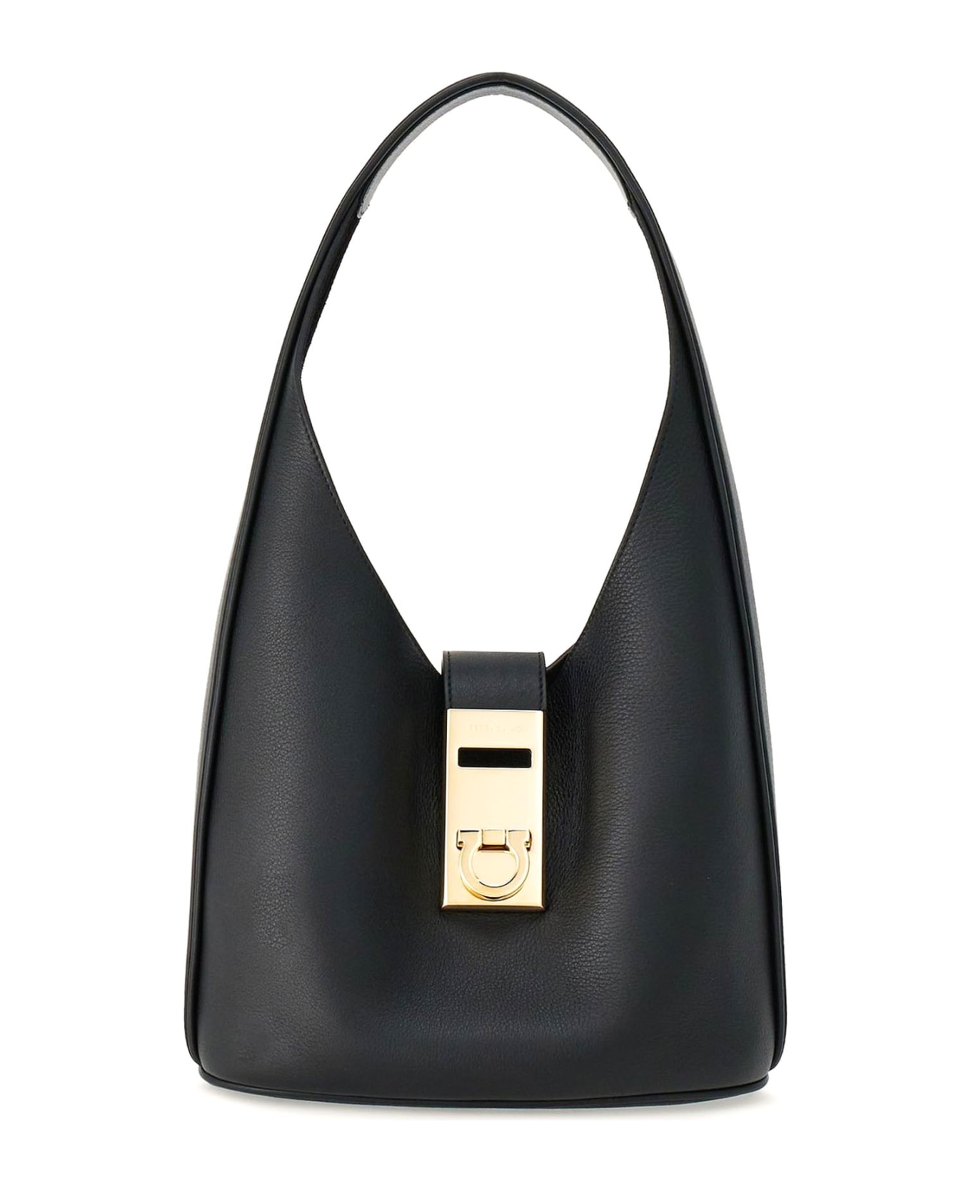 Ferragamo Hobo bag in black calfskin, detachable inner clutch and Gancini buckle, it is adorned by the stamped brand name on the front. height 28. 0 CM / 11 IN length 18. 0 CM / 7 IN width 16. 0 CM / 6. 2 IN Composition: Leather, 100%