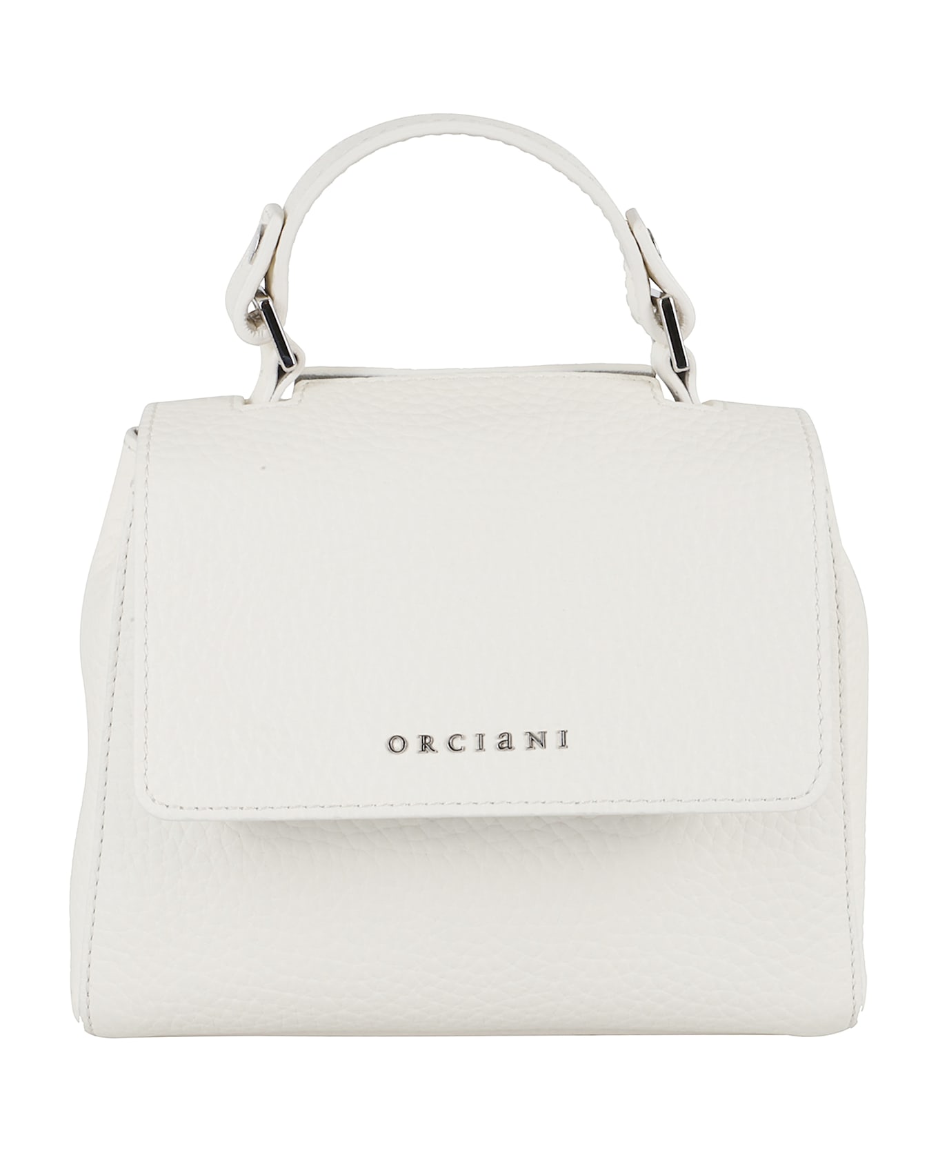 Sveva Soft Mini bag - Orciani - White color - Made of grained leather - Single compartment with inside pocket - Top handle - Adjustable and removable shoulder strap - Front metal logo - Dimensions: 20 x 15 x 8 cm.