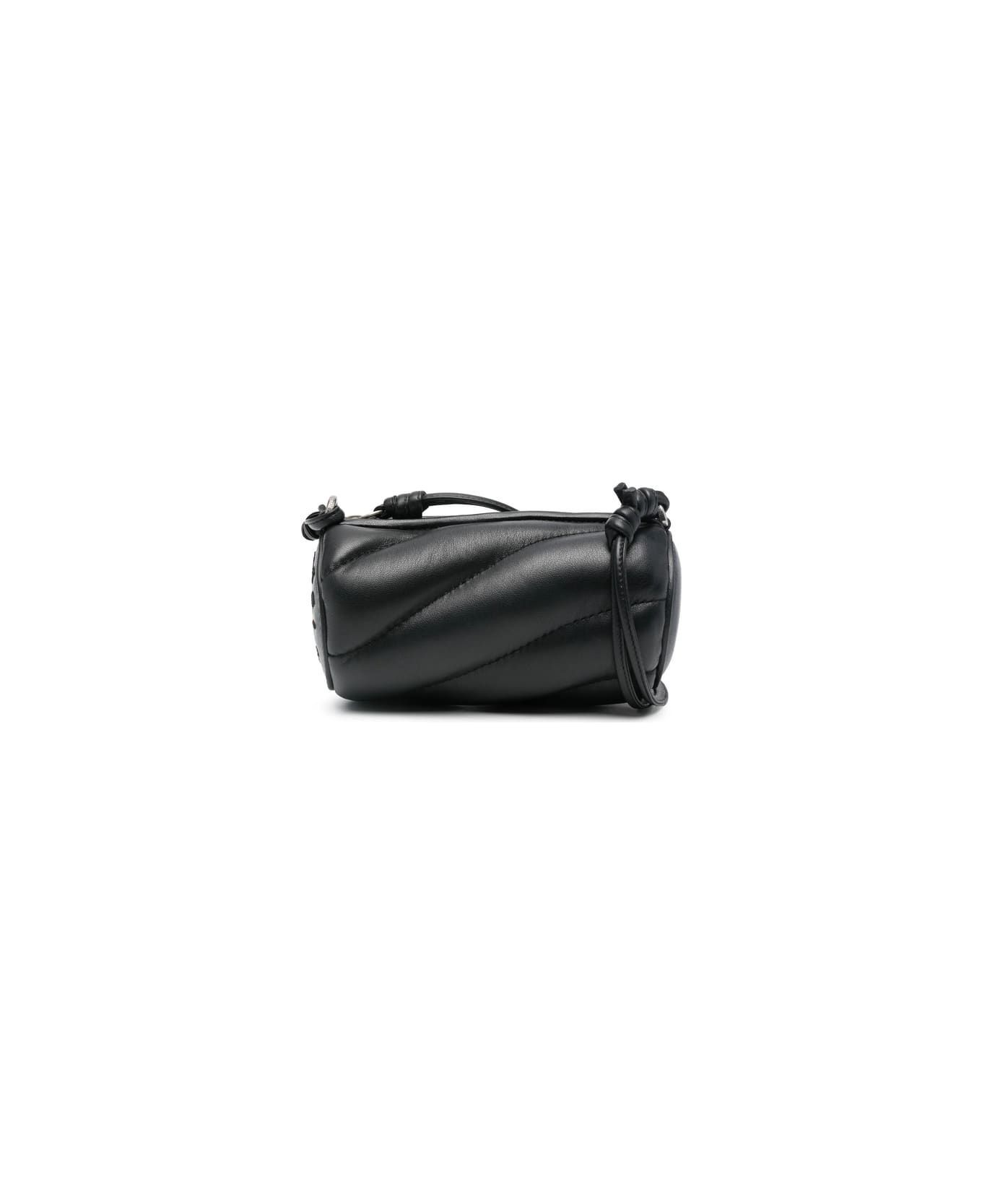 black calf leather smooth grain quilted top zip fastening adjustable shoulder strap knot detailing padded design embroidered logo to the side main compartment internal patch pocket full lining