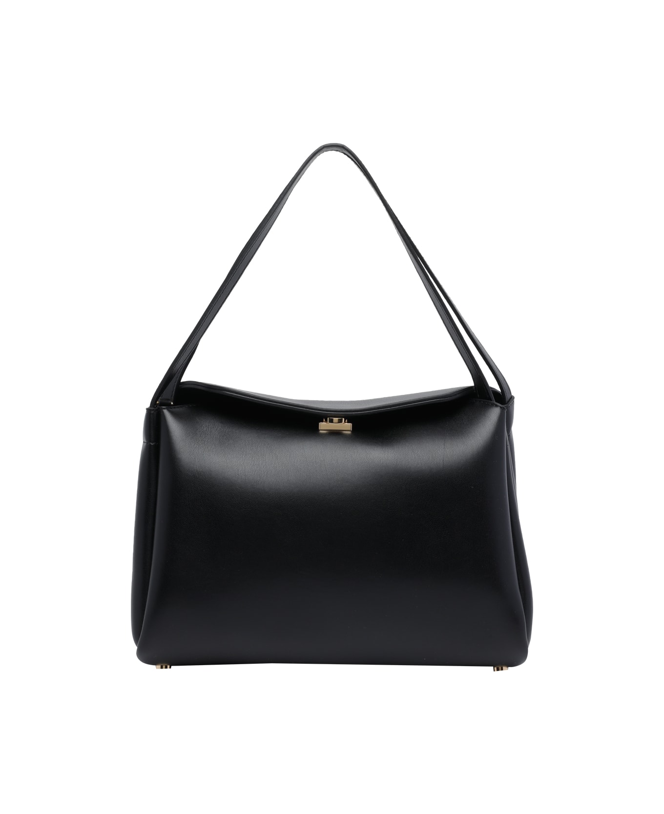 The Moire' black Calipso Trunk shoulder bag, magnetic closure, inner central pockets, one open pocket, one zip pocket, 2 handles, adjustable and removable shoulder strap