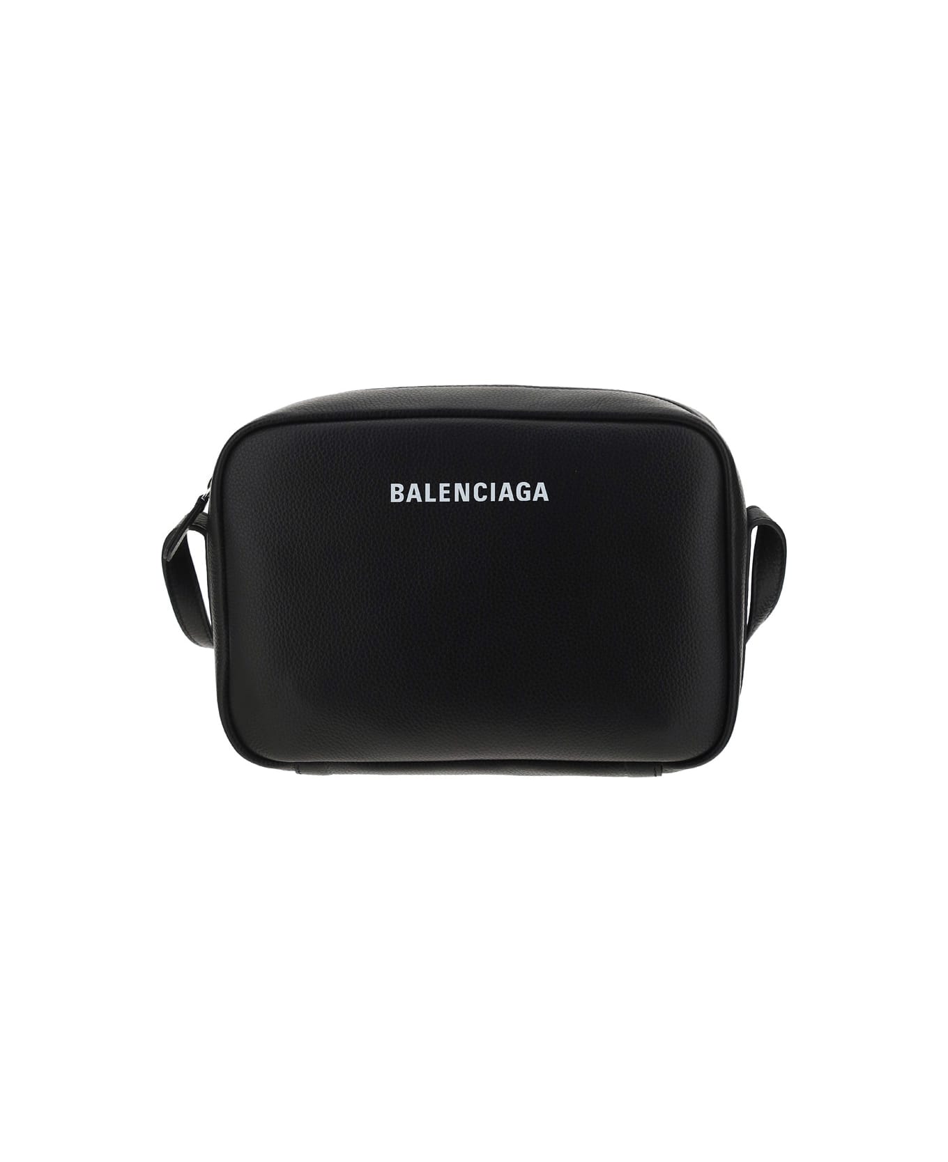 Calfskin Everyday Shoulder Bag by Balenciaga, hammered leather, contrasting brand logo on the front, adjustable shoulder strap, zipper opening, patch welt pocket on the back. Composition: 100% Calf Leather Bos Taurus