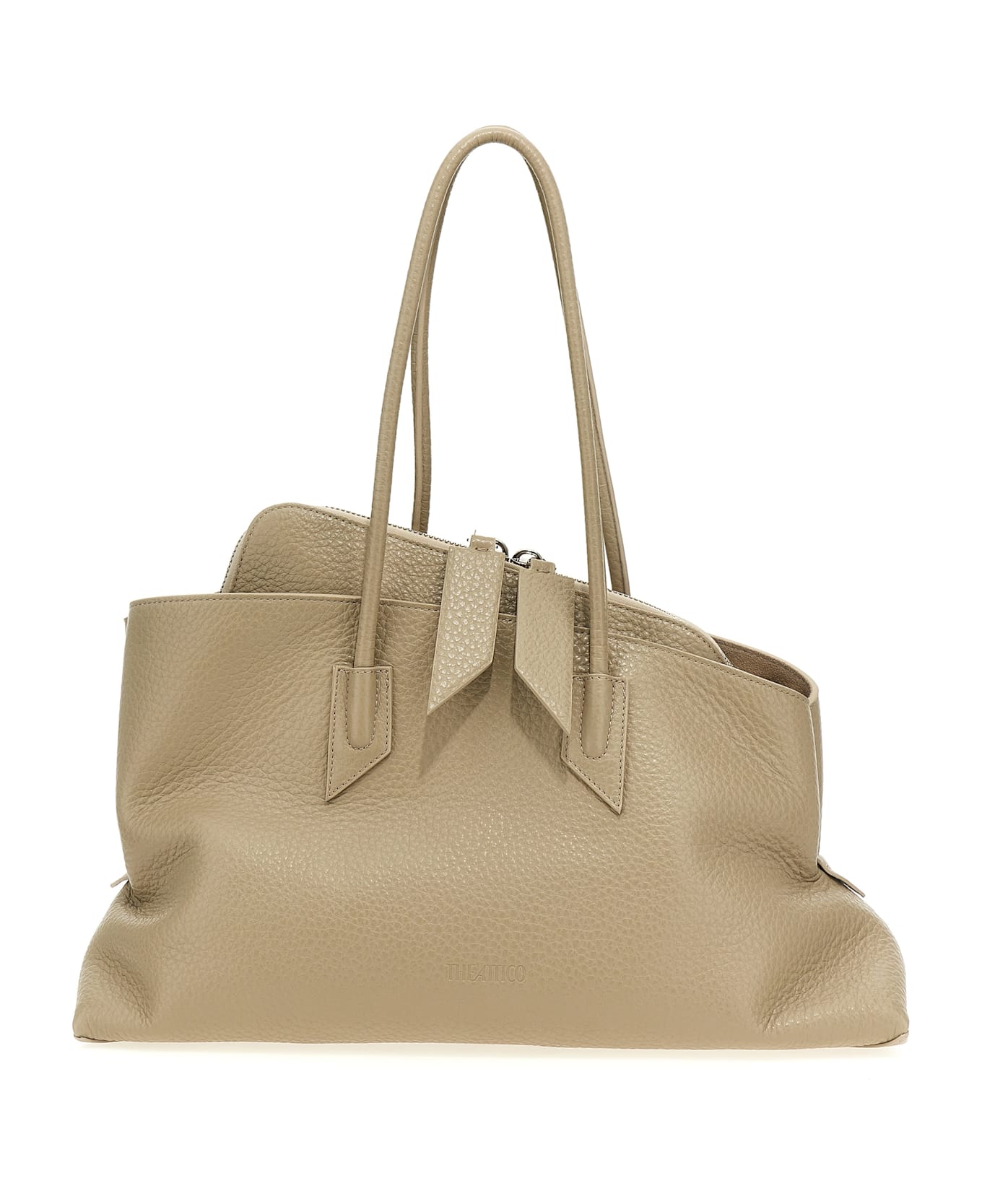 'La Passeggiata Medium' shoulder bag in grained leather, embossed logo on the front, double fixed tubular handles, top zip closure, side pockets, rigid base with metal logo feet. Composition: 100% calfskin leather (Bos Taurus)
