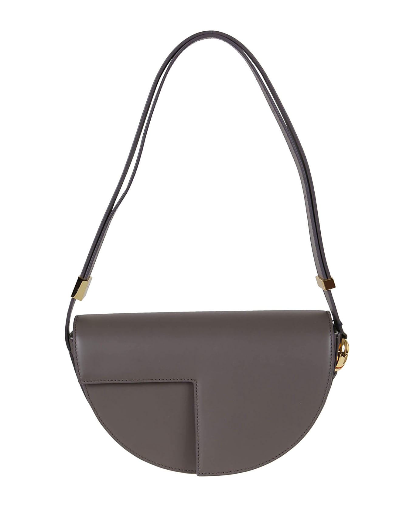 Le Patou bag BY PATOU. Crescent shape with geometric cuts inspired by the JP monogram; magnetic closure with gold JP detail; eco-friendly lining. Patou engraved gold metal detail on the side. It can be carried both over the shoulder and by hand, thanks to the adjustable shoulder strap.