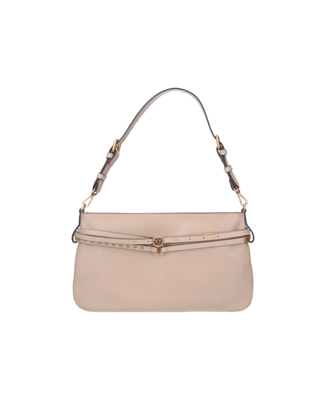 - Medium shoulder bag "Belt bag" Pinko in beige leather - zip closure - one adjustable top handle - "Love Birds" logo detail and gold metal studs on the front - one internal zip pocket - one internal flat pocket - one main internal compartment