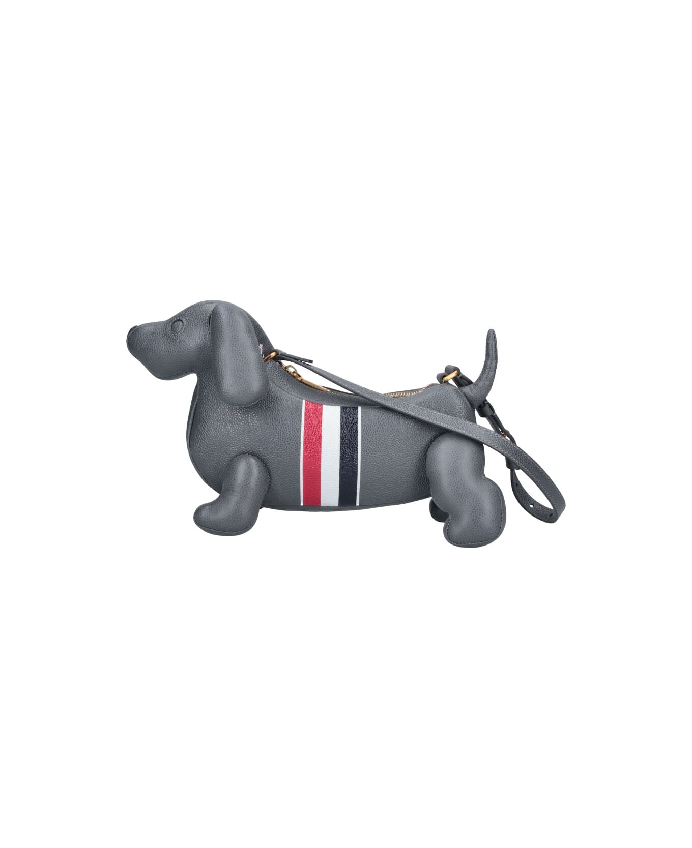 Shoulder bag "Hector" by Thom Browne in gray leather, adjustable and removable shoulder strap, zip closure, tricolor detail on the front, one main internal compartment. Composition: 100% Leather