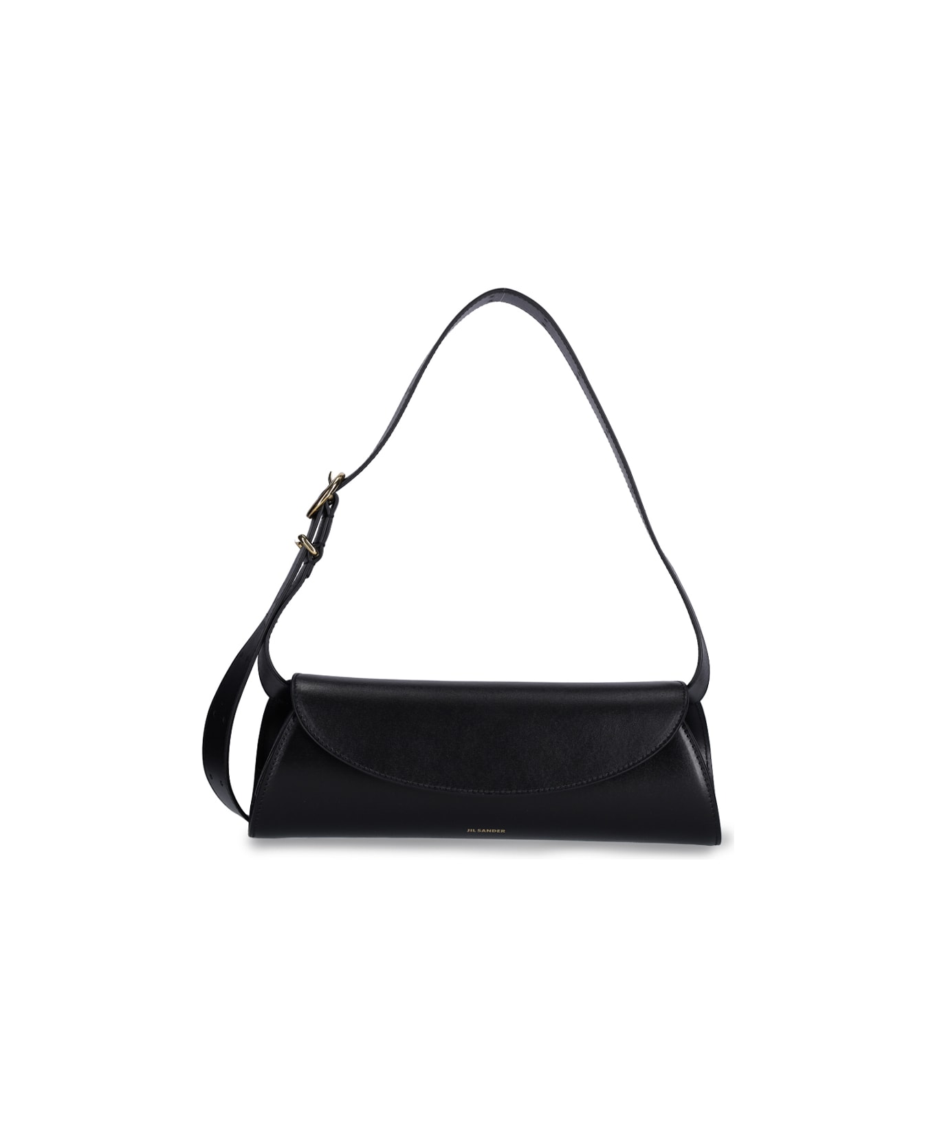 Jil Sander Small 'Cannolo' Shoulder Bag, smooth calf leather, black, magnetic button closure, adjustable leather shoulder strap, credit card slots, embossed logo lettering, Autumn Winter 2022 2023, women's shoulder bags.